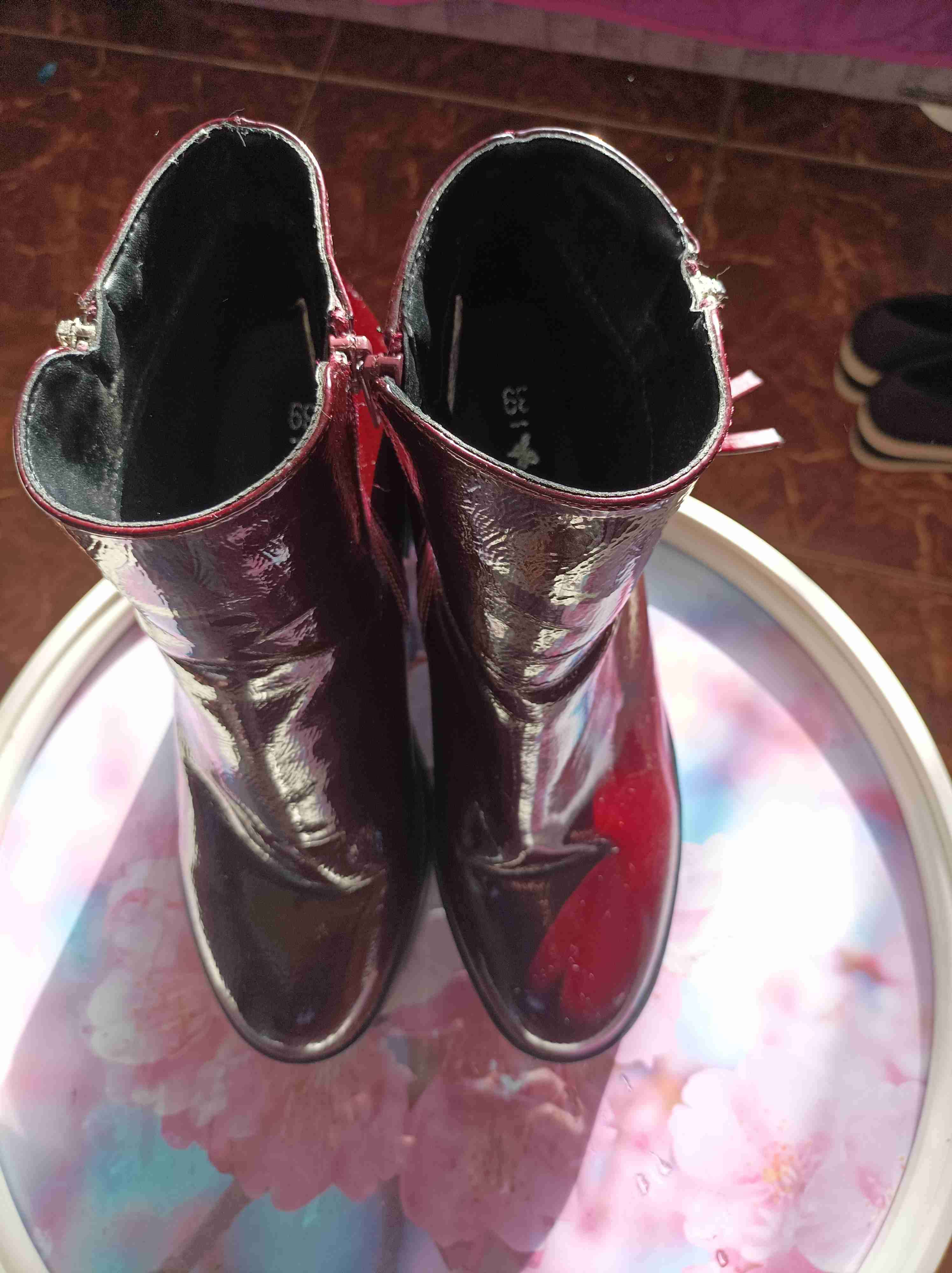 Botines de charol burdeos talla 39 con cierre lateral. Ideales para estilo moderno y casual. En buen estado.
