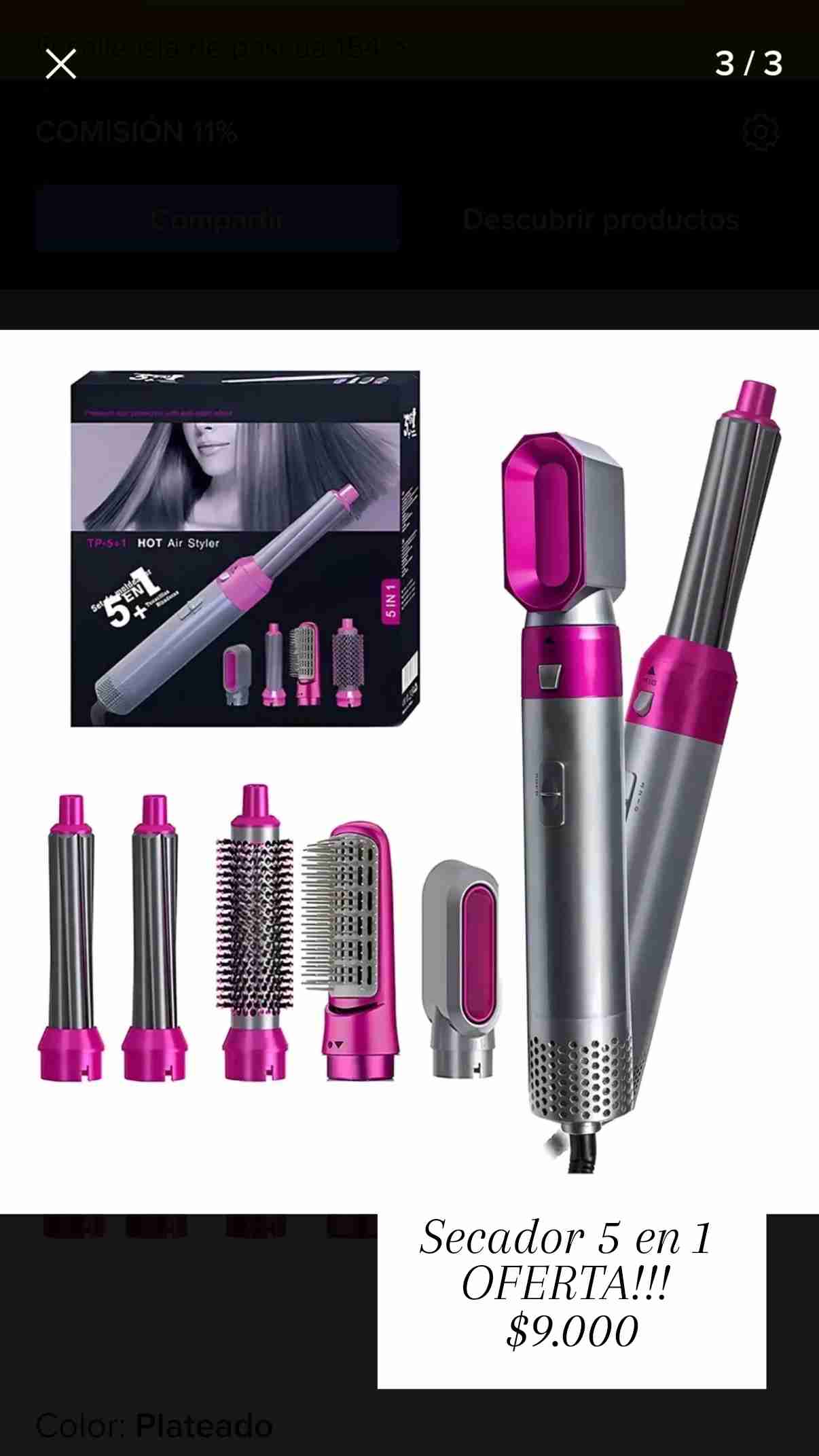 Versátil secador de pelo con 5 accesorios intercambiables para peinado. Ideal para estilo diario.
