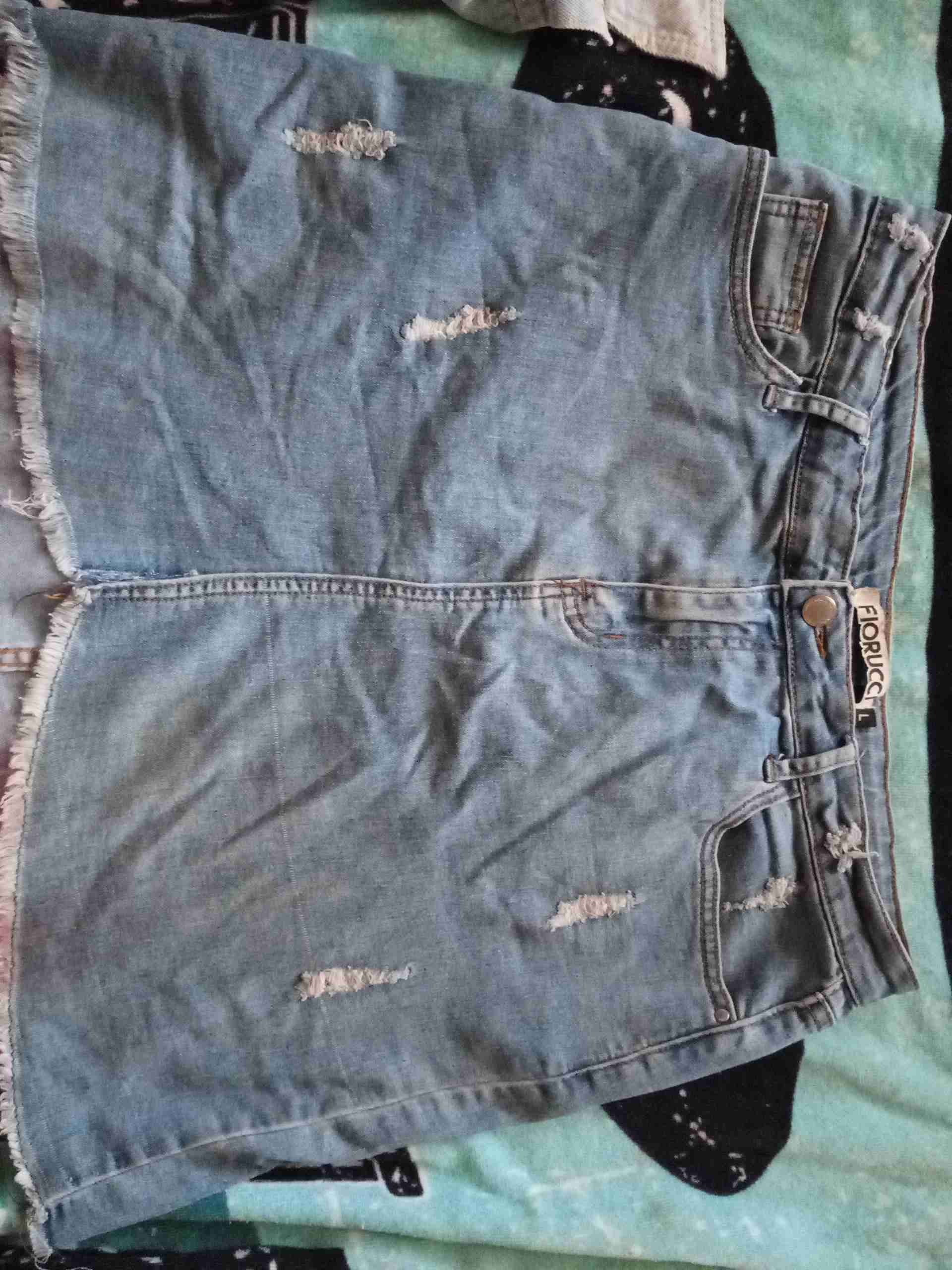 Falda de mezclilla con diseño desgastado, estilo casual y juvenil. En buen estado, ideal para el día a día.