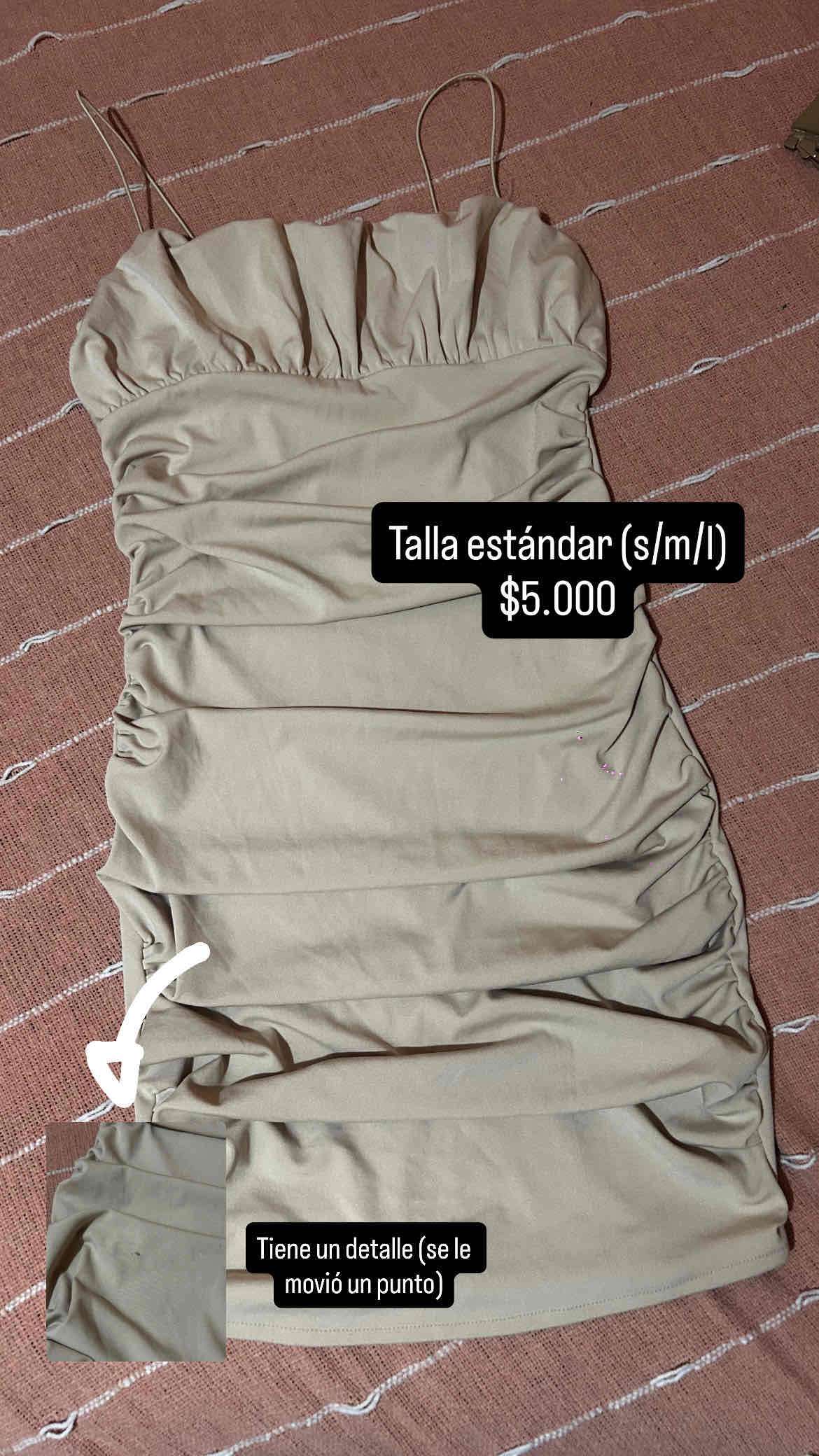 Vestido beige estilo ajustado con detalle en la costura. Ideal para salidas casuales. Tiene un leve defecto en un punto.