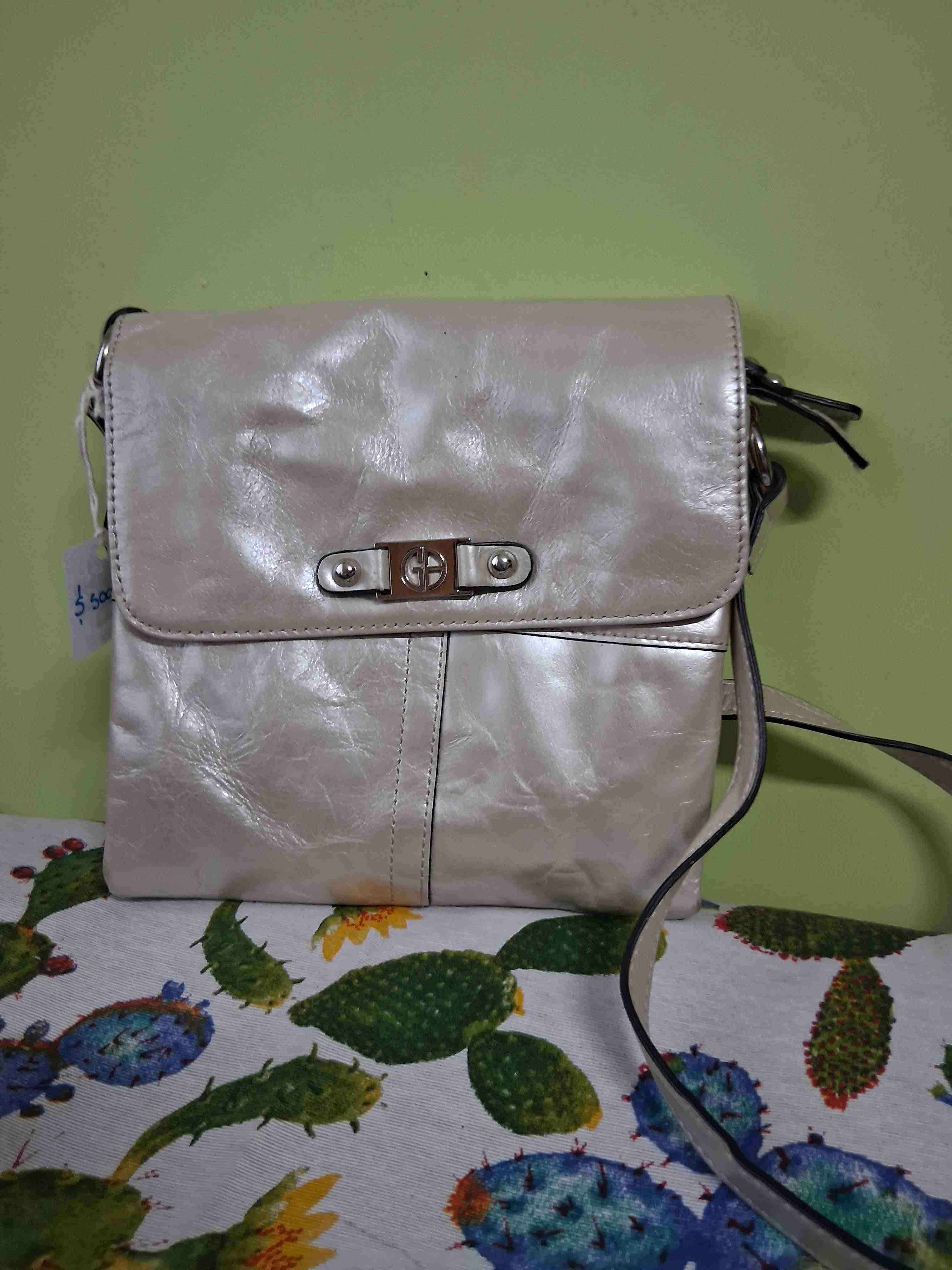 Bolso bandolera de color beige brillante, ideal para salidas casuales. En buen estado, practicamente como nuevo.