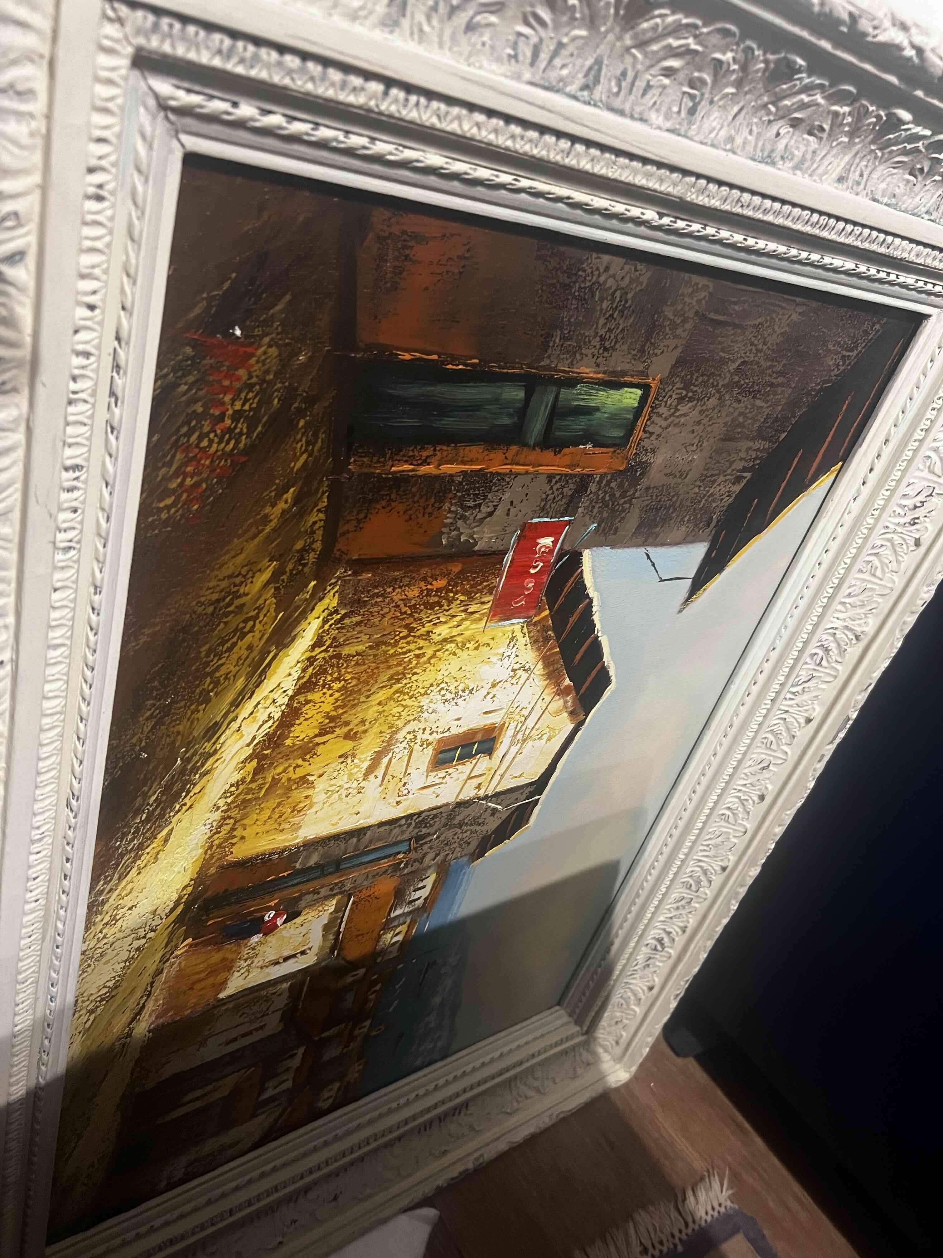 Cuadro decorativo, ideal para el hogar, con marco blanco detallado. En buen estado.