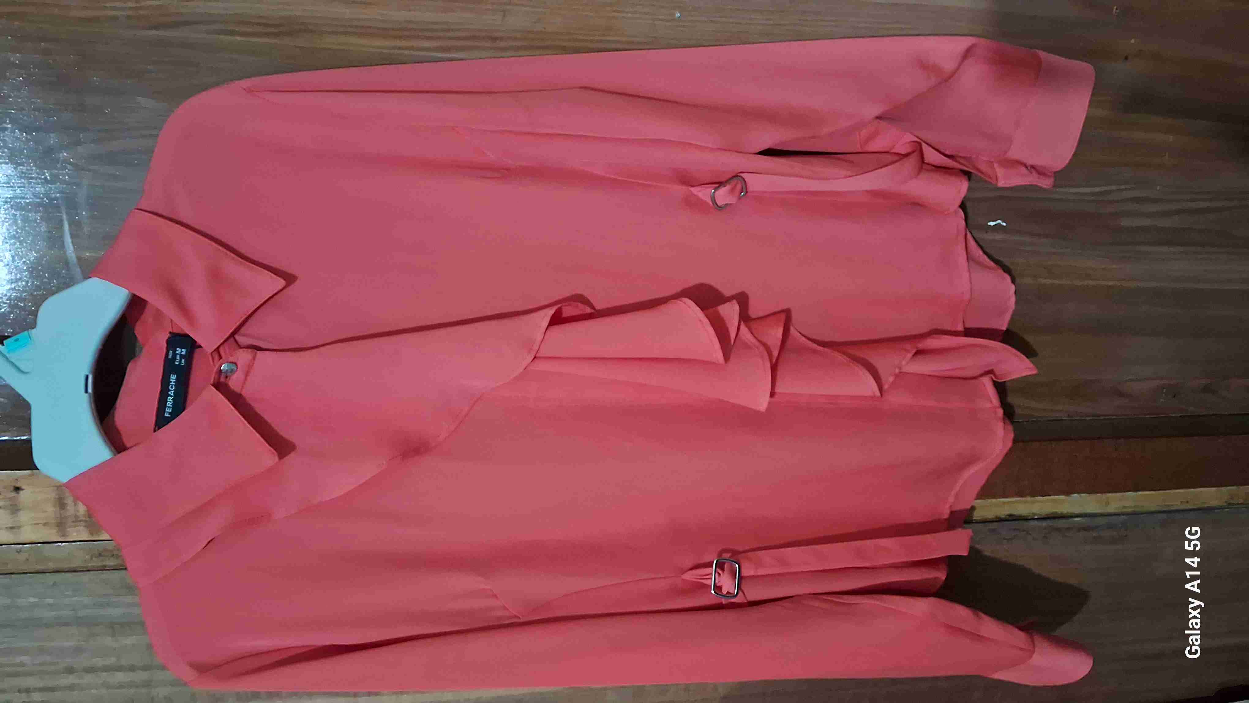 Blusa coral con elegantes volantes, ideal para ocasiones formales. En buen estado general, con poco uso visible.