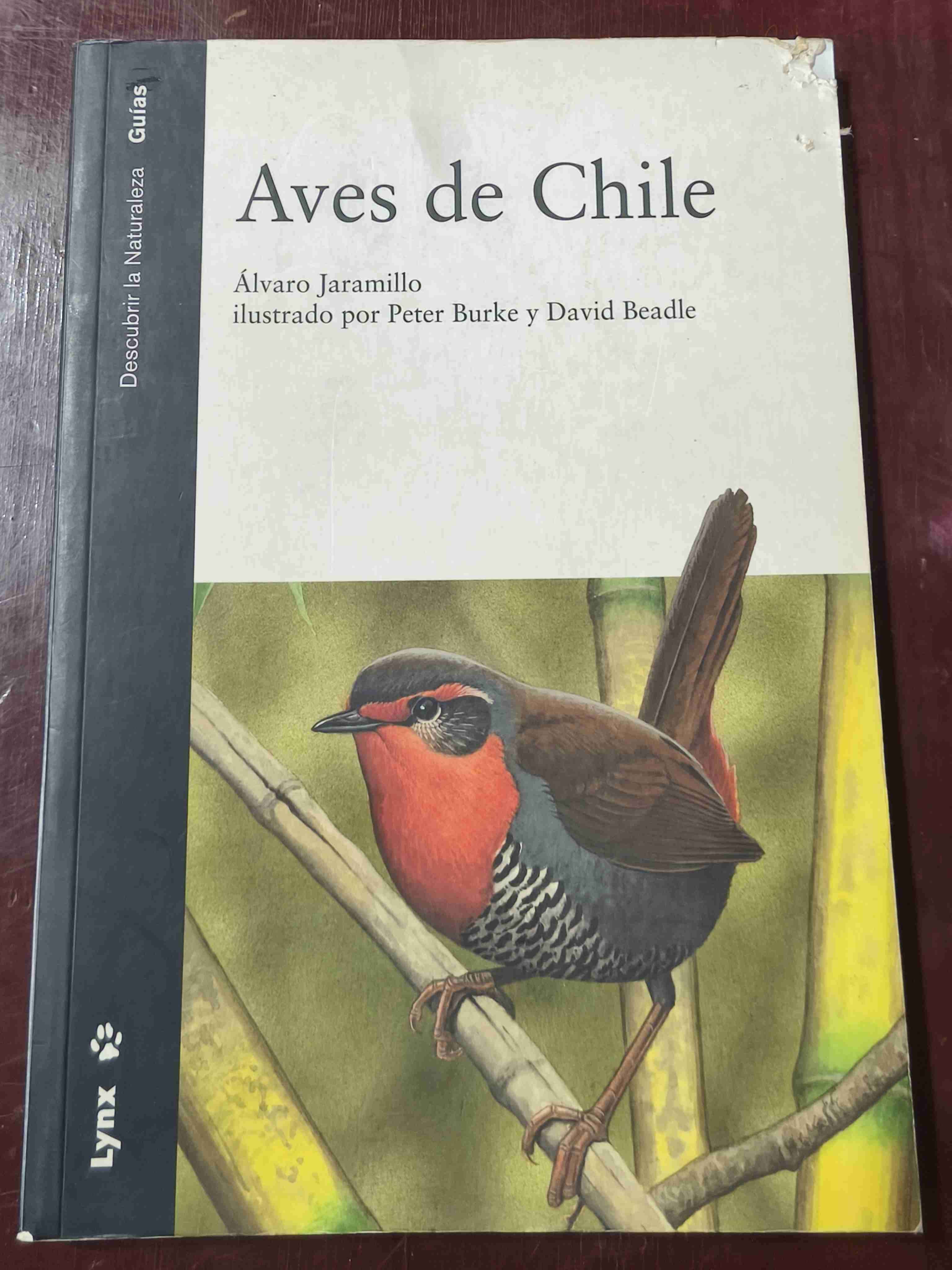 Guía ilustrada de aves chilenas. Ideal para amantes de la naturaleza. Presenta desgaste en la cubierta.