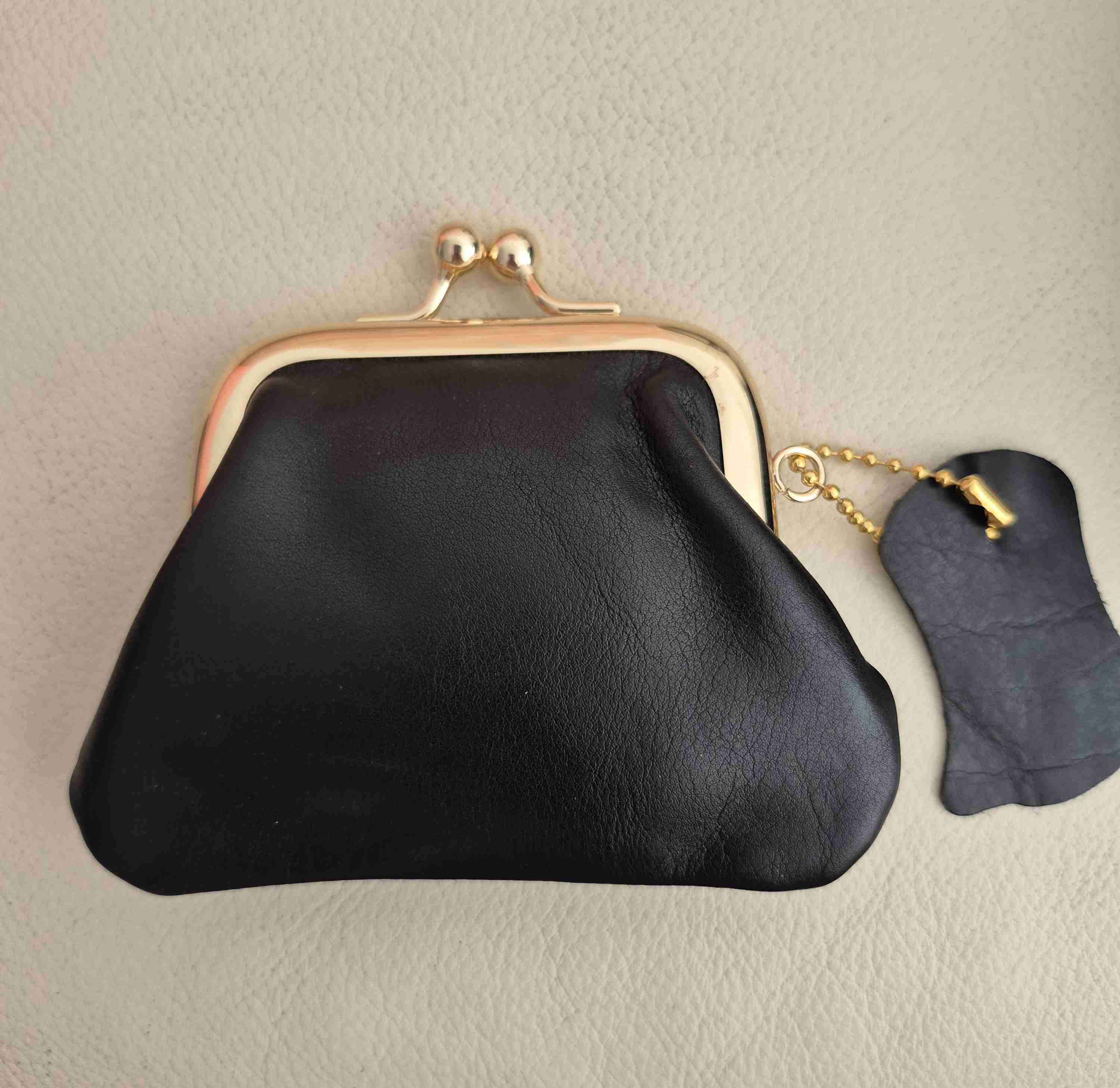 Elegante monedero de cuero negro con cierre dorado. Ideal para uso diario.