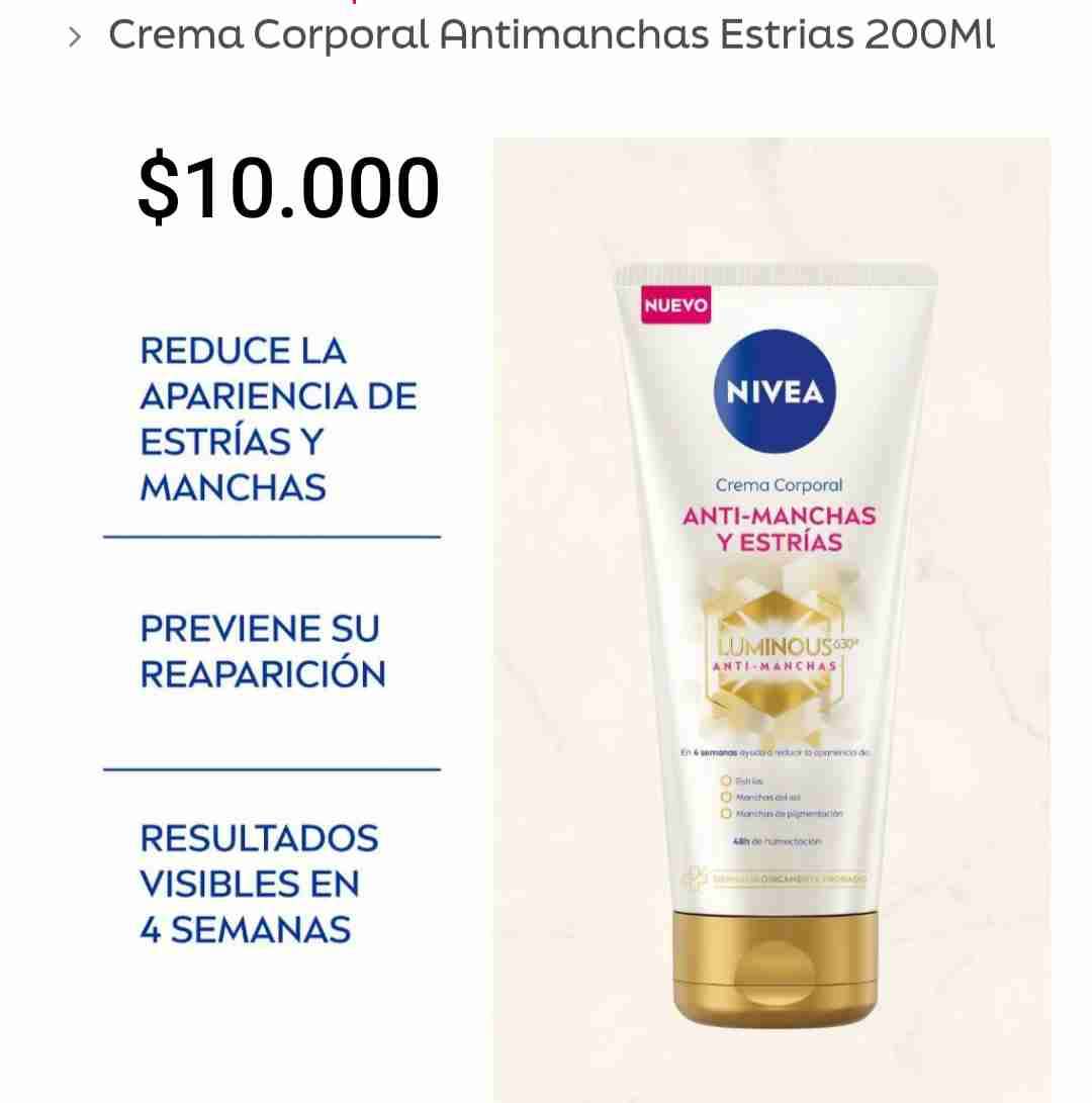 Crema corporal de 200ml que reduce la apariencia de estrías y manchas. Resultados visibles en 4 semanas. Nuevo.