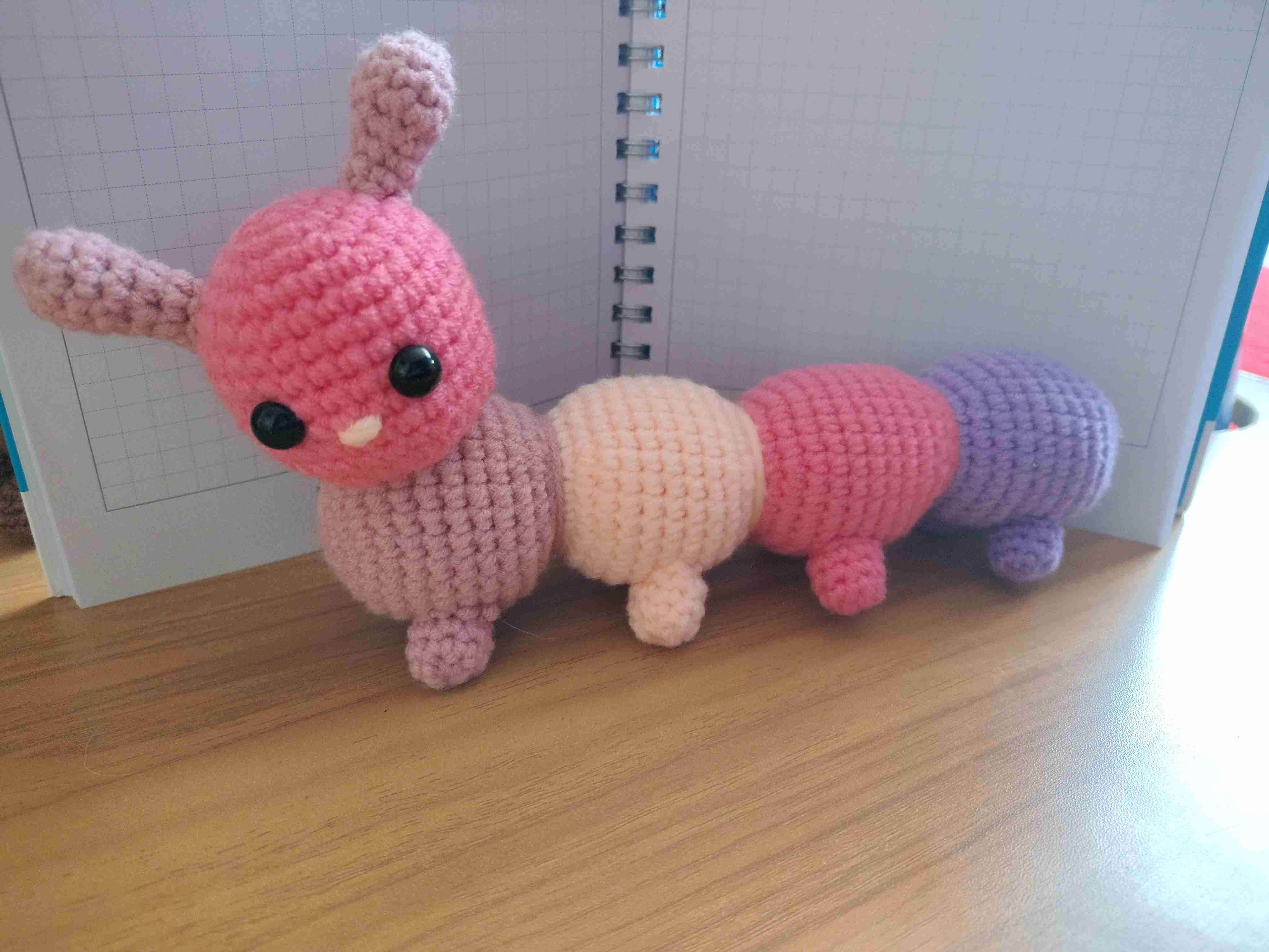 Lindo gusano tejido a crochet, perfecto para decorar o abrazar. Hecho a mano con cuidado.