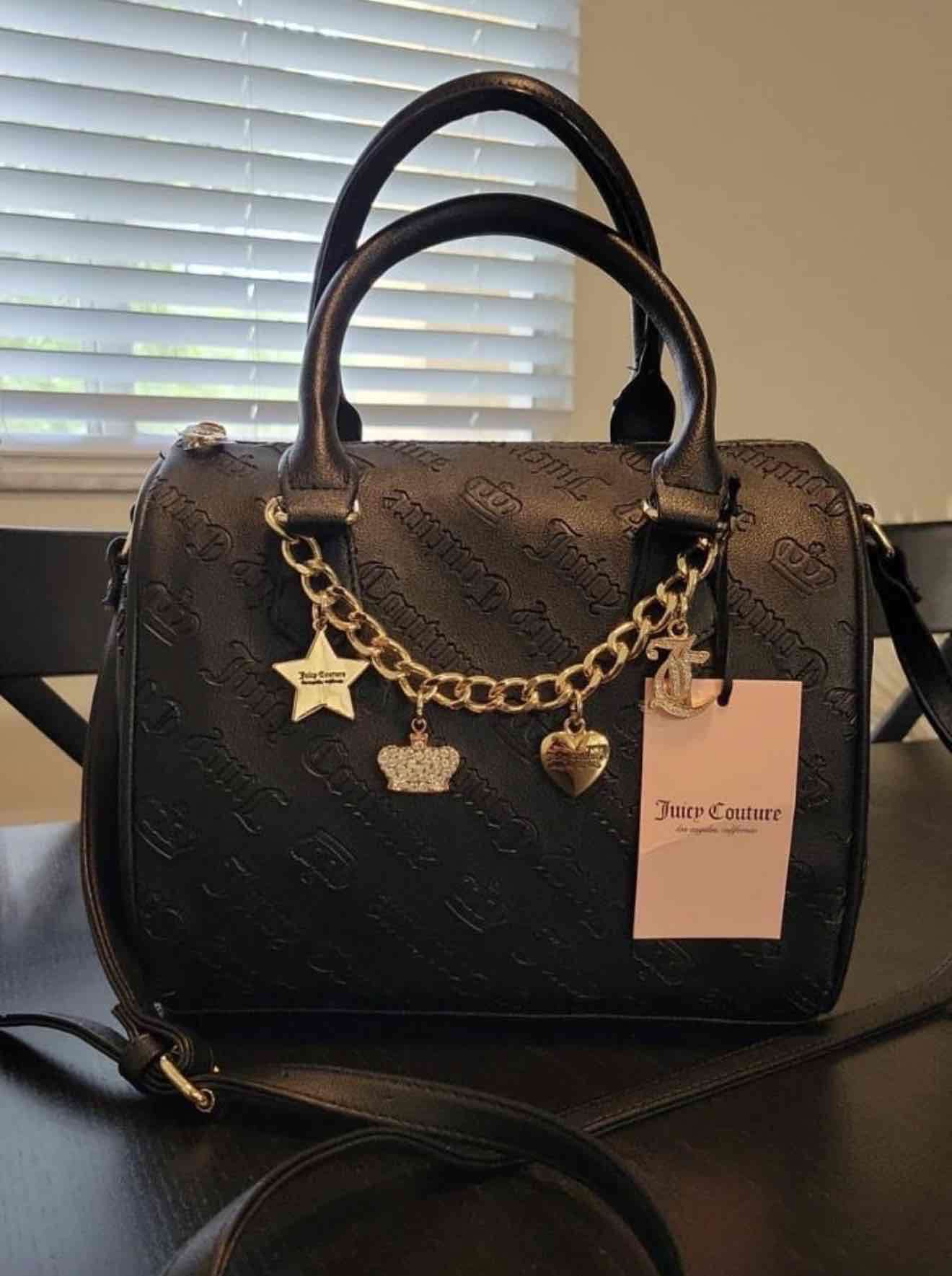 Elegante bolso negro con detalles dorados, perfecto para uso diario. Nuevo, con etiquetas.