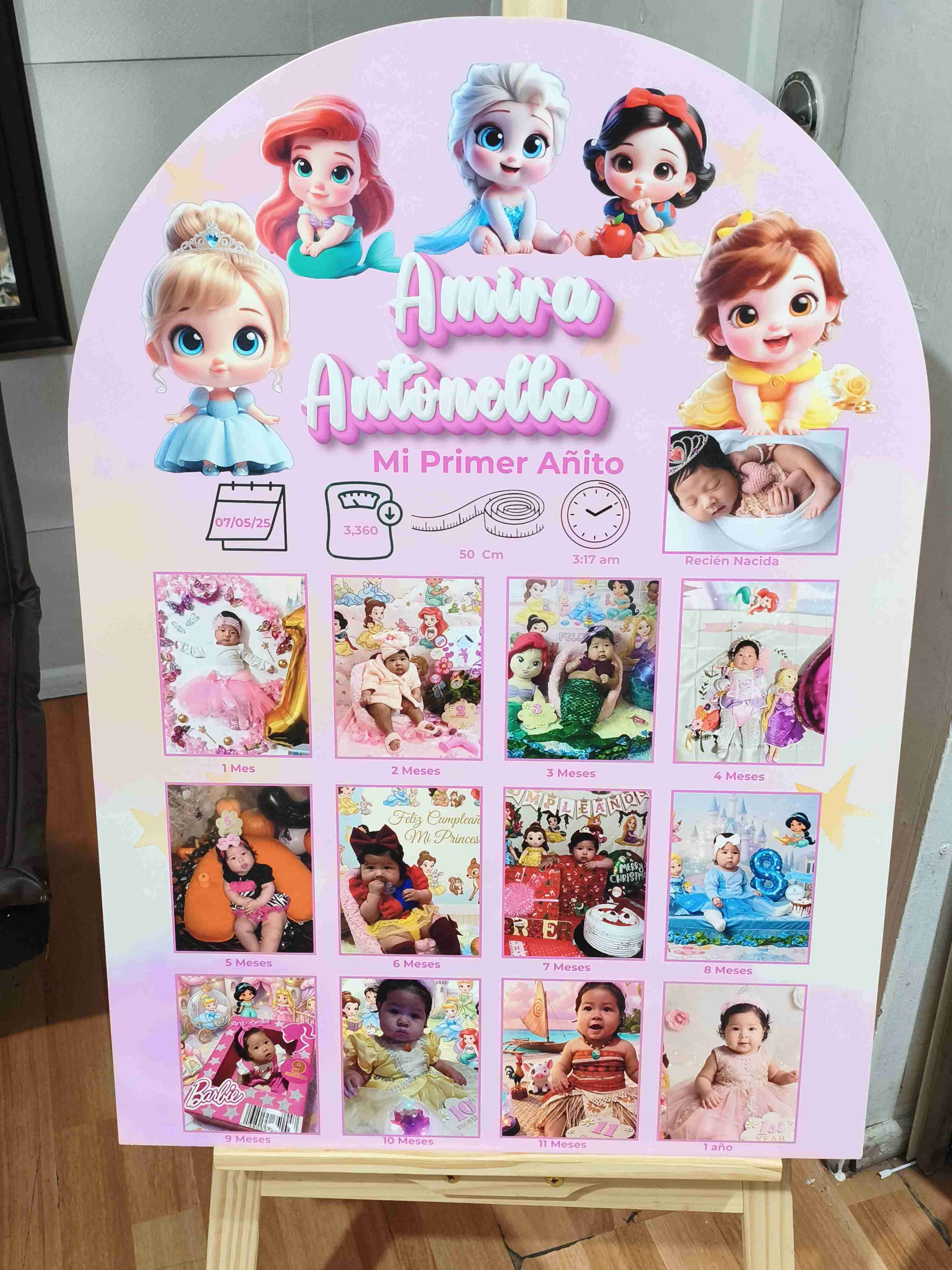 Hermoso cartel personalizado para celebrar el primer año de tu bebé. Ideal para decorar la fiesta y guardar como recuerdo.