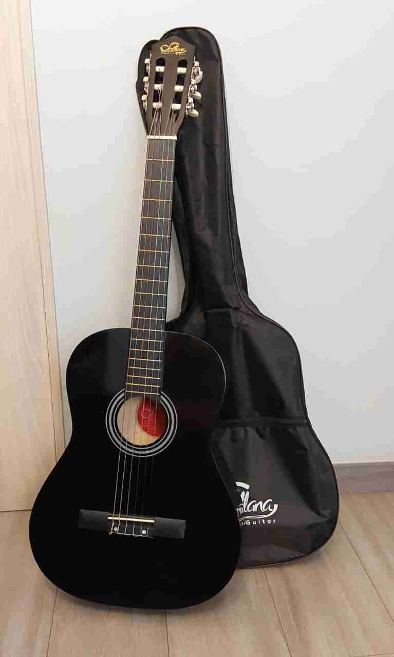 Guitarra acústica en perfecto estado con acabado brillante. Ideal para principiantes y músicos intermedios. Incluye funda protectora. Está bien cuidada y su pintura no está agrietada, no se encuentra maltratada o raspada en algún lado.