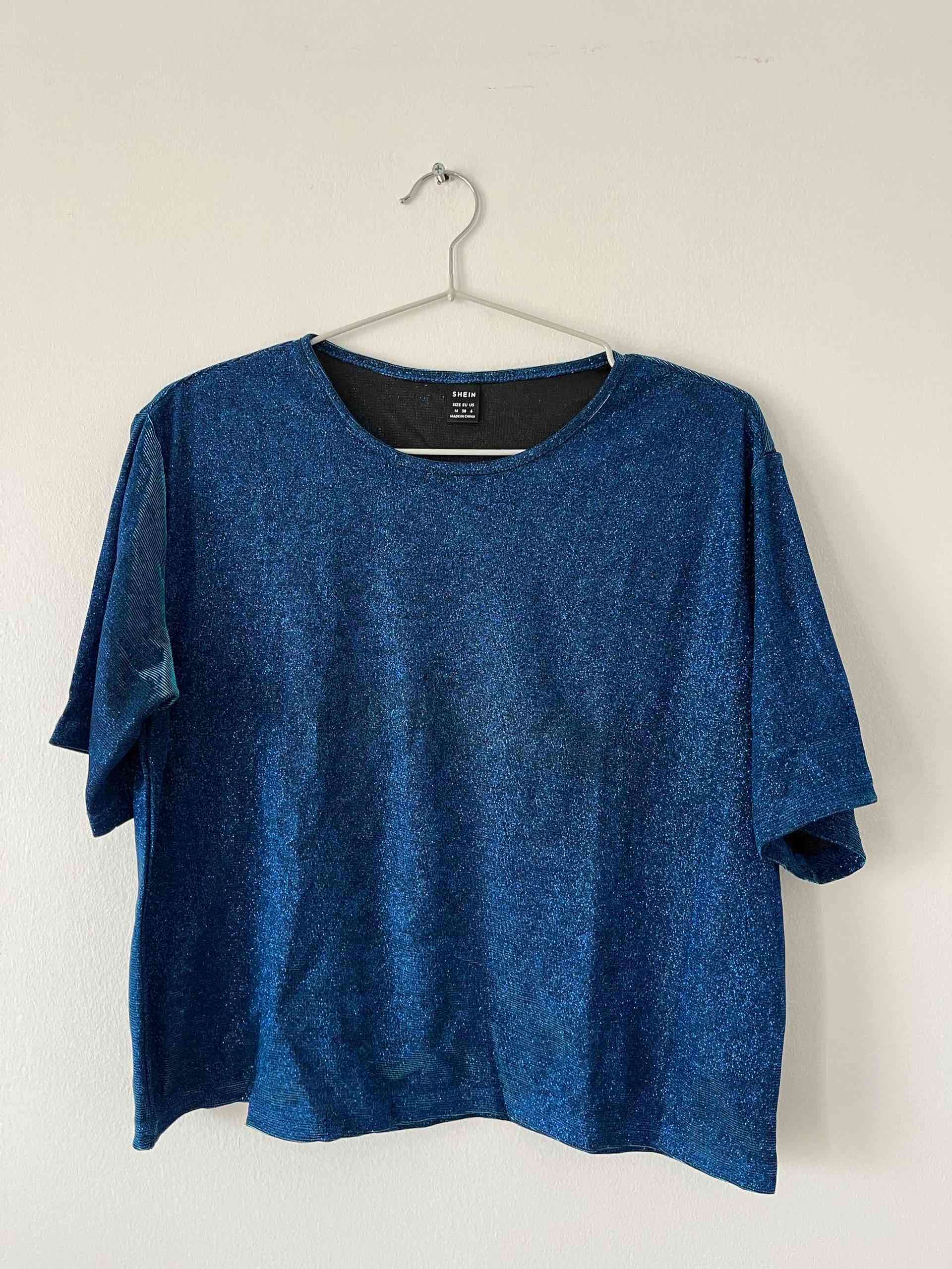 Polera casual azul con brillo, en buen estado. Perfecta para un look relajado y moderno.