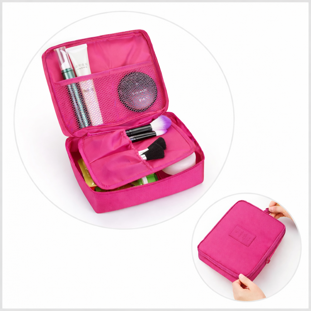 Práctico neceser para organizar tu maquillaje y cosméticos. Color Fucsia, ideal para llevar de viaje. En buen estado.