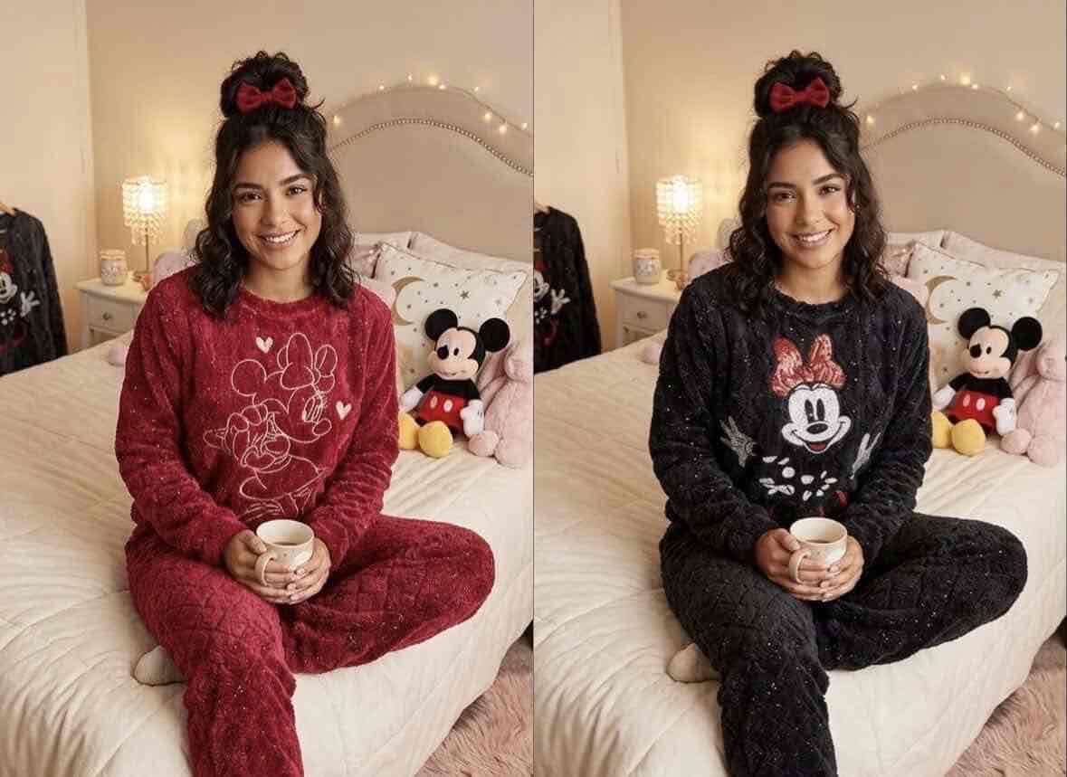 Conjunto de pijama de polar con diseño de Minnie Mouse, ideal para el invierno. Muy cómodo y en buenas condiciones.