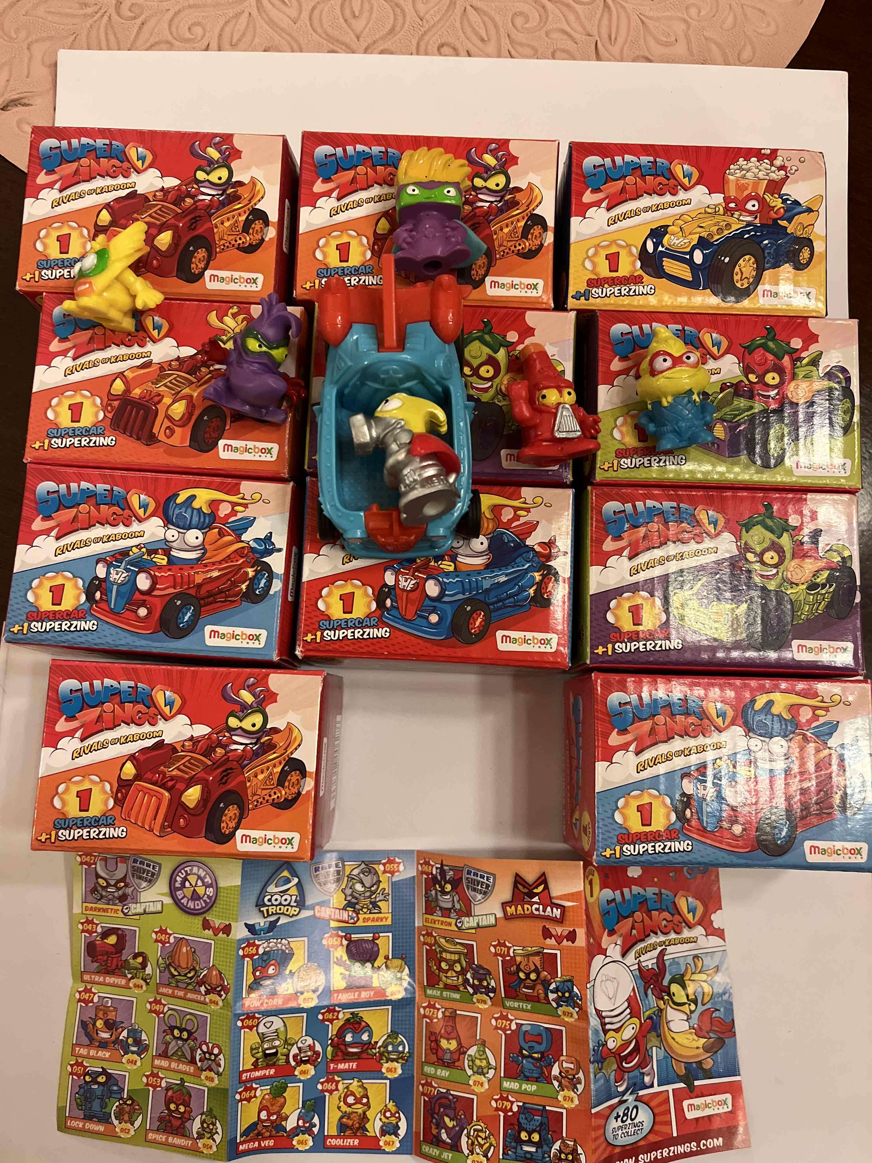 Set de juguetes Superzings con superautos de colección. Ideal para coleccionistas o niños fanáticos. En buen estado.