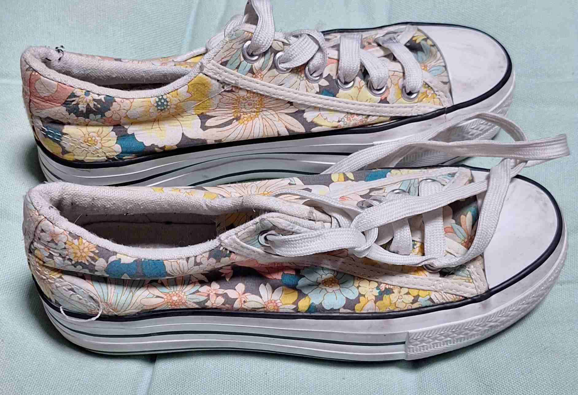 Zapatillas casuales con diseño de flores. En buen estado, ideales para uso diario. Cómodas y con estilo.