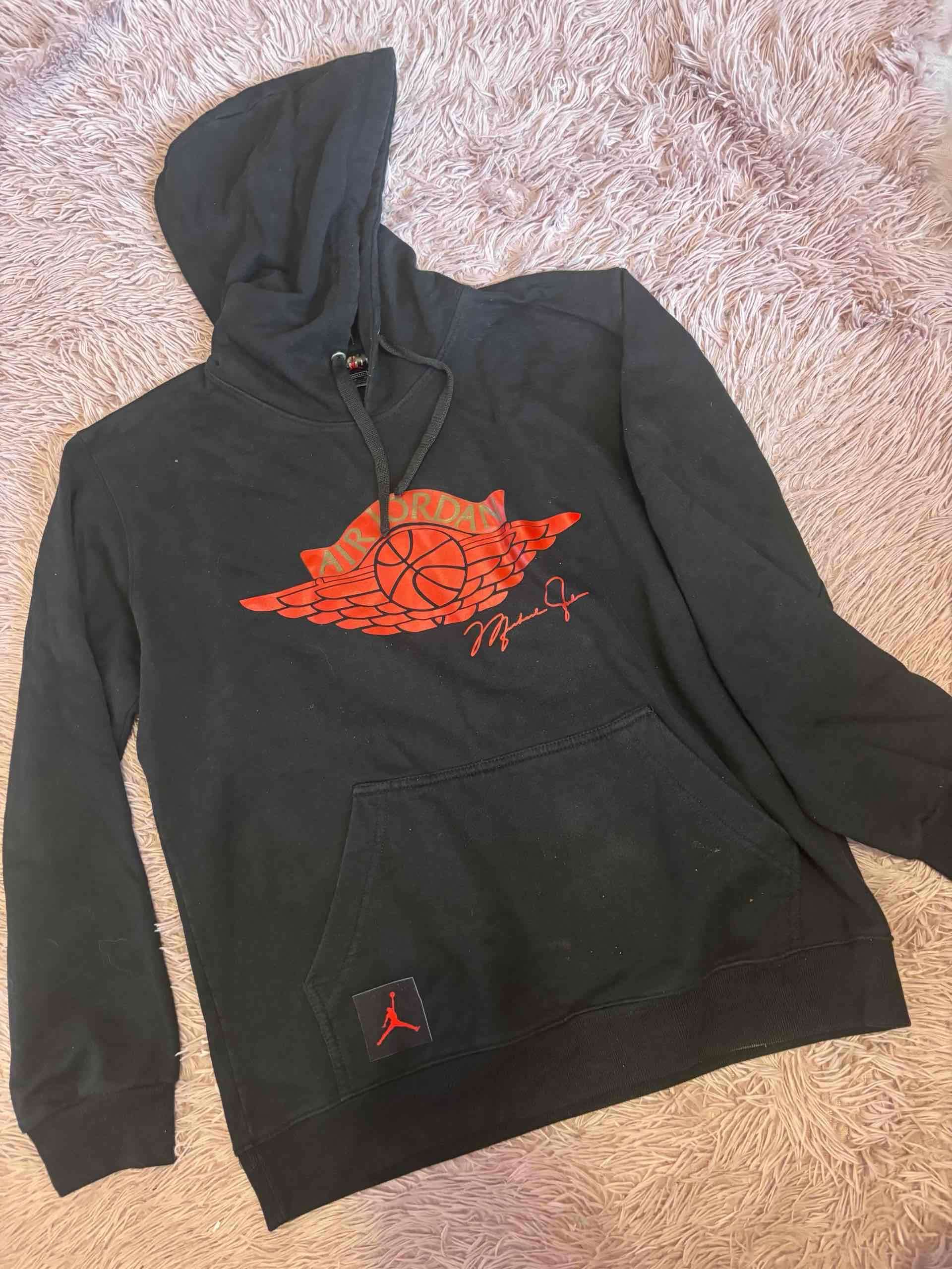 Polerón negro con capucha y diseño Air Jordan en rojo. Perfecto para el uso diario