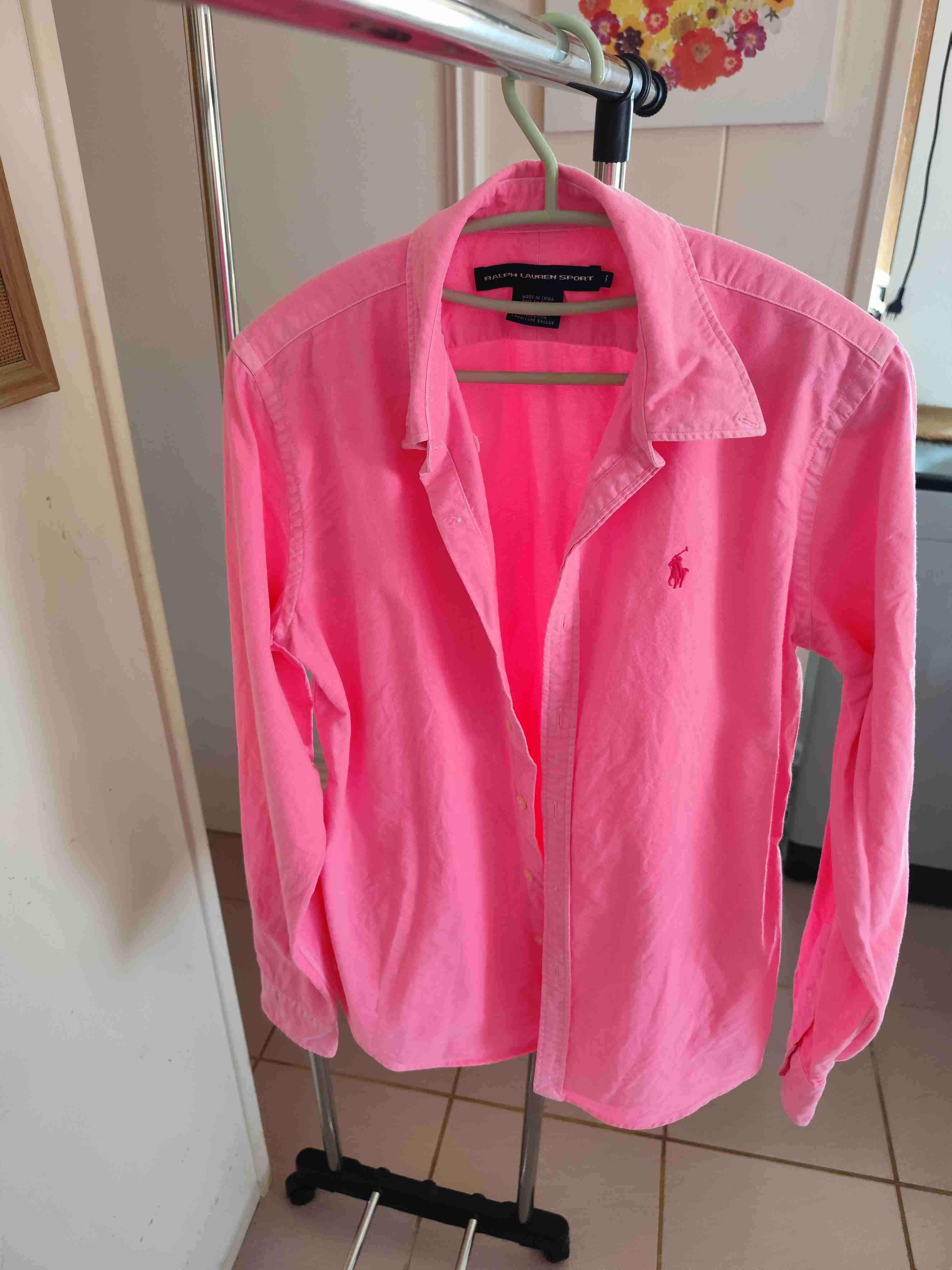 Camisa de hombre Ralph Lauren en tono rosado, ideal para ocasiones casuales. En buen estado con leves signos de uso.