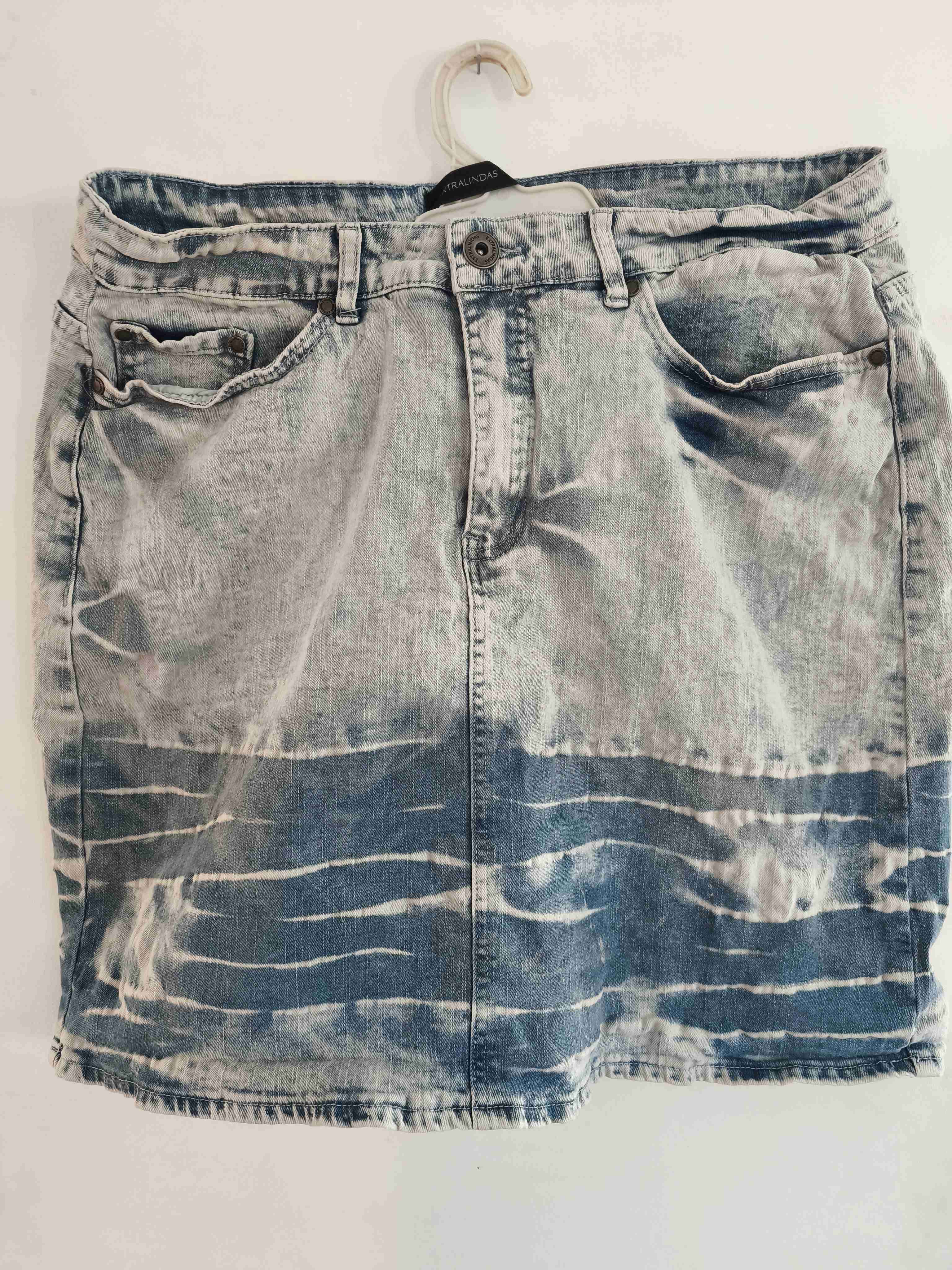 Falda de mezclilla con diseño desgastado. En buen estado, perfecta para looks casuales.