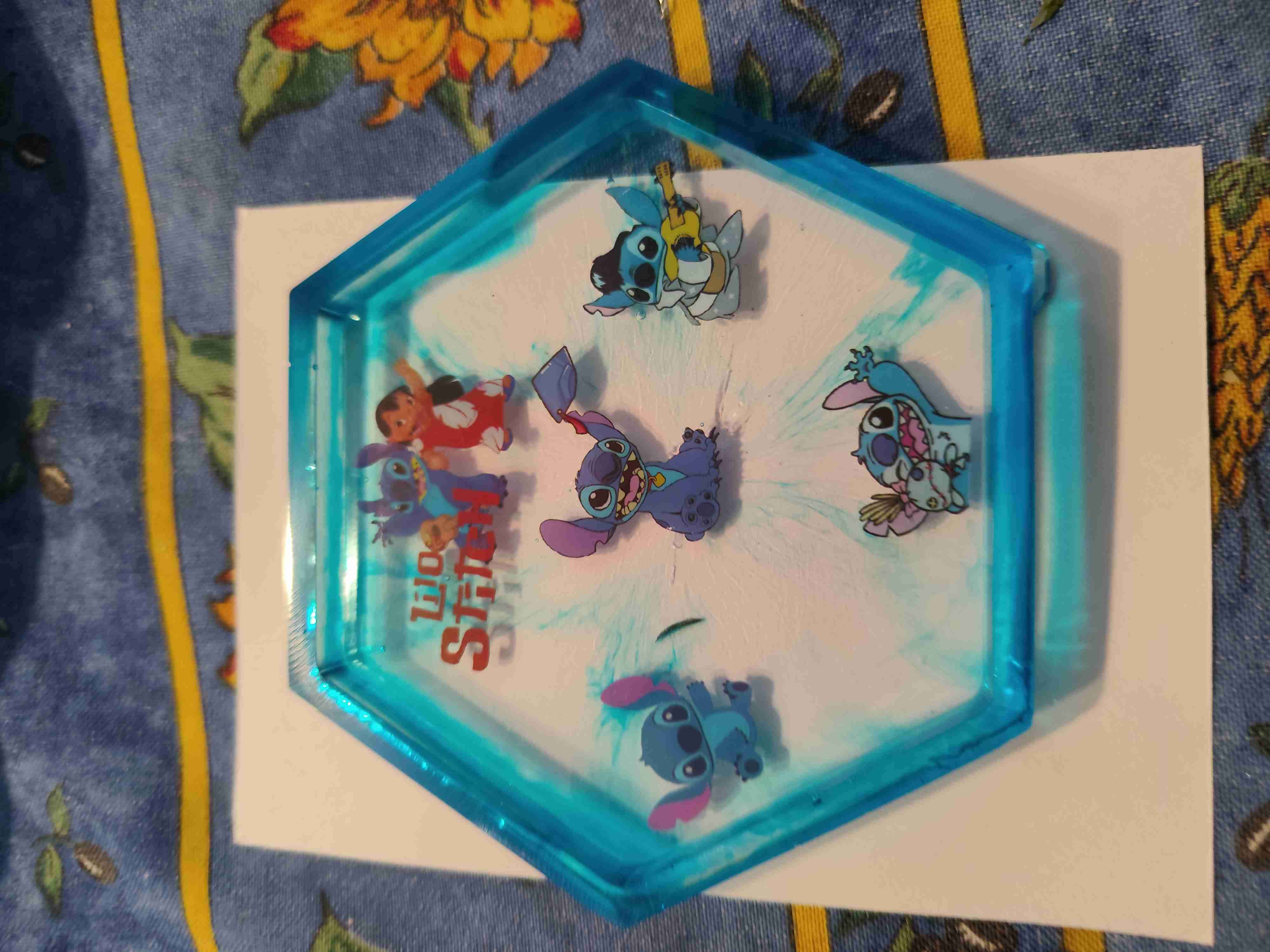 Posavasos hexagonal de Lilo & Stitch, azul, perfecto para fans de Disney. En buen estado.