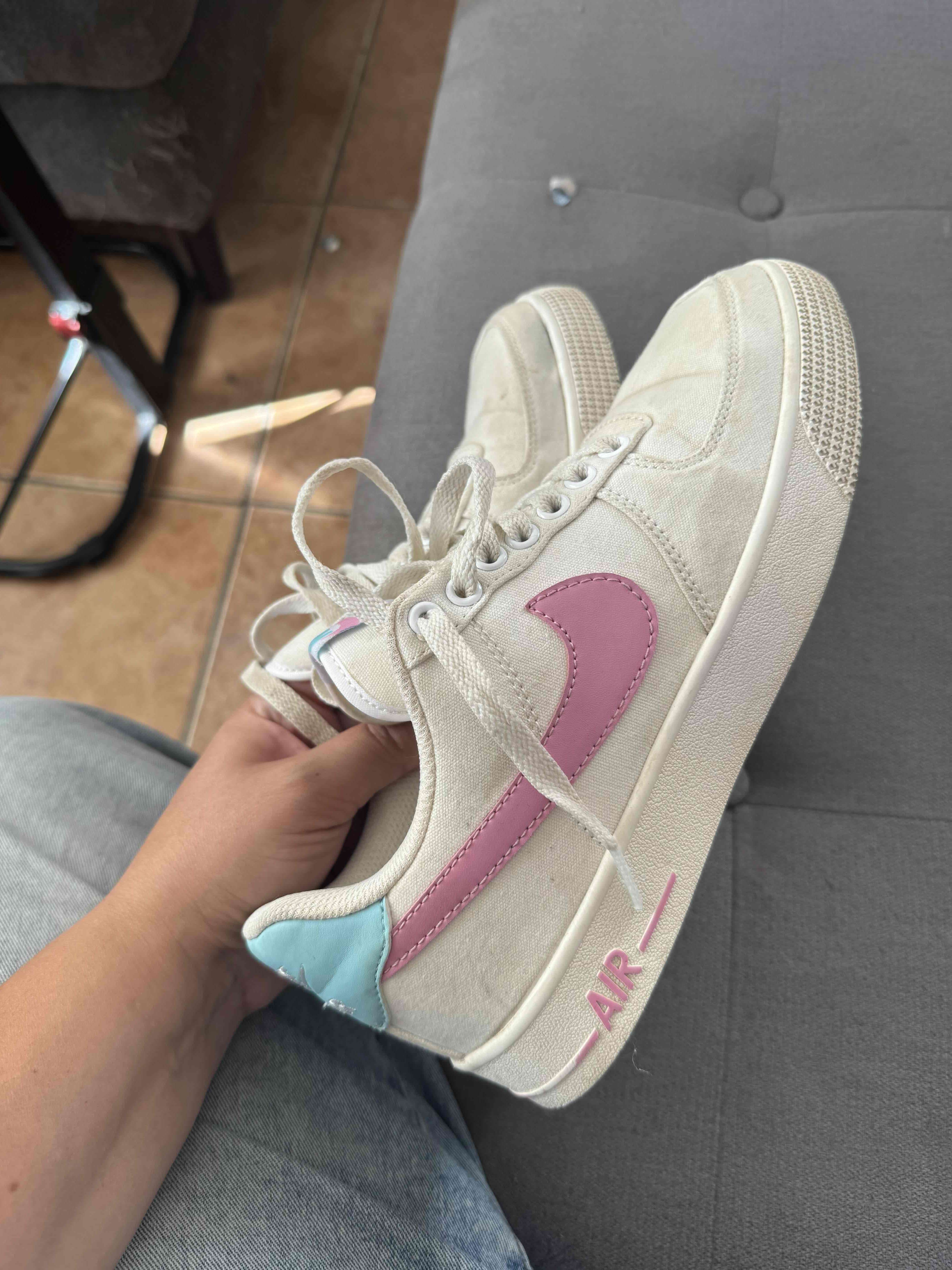 Zapatillas estilo casual con detalles rosados y celestes, perfectas para uso diario. Están en buen estado.