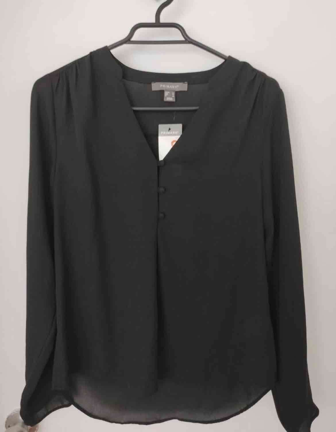 Elegante blusa negra con cuello en V y detalle de botones frontales. Perfecta para look formal o casual.