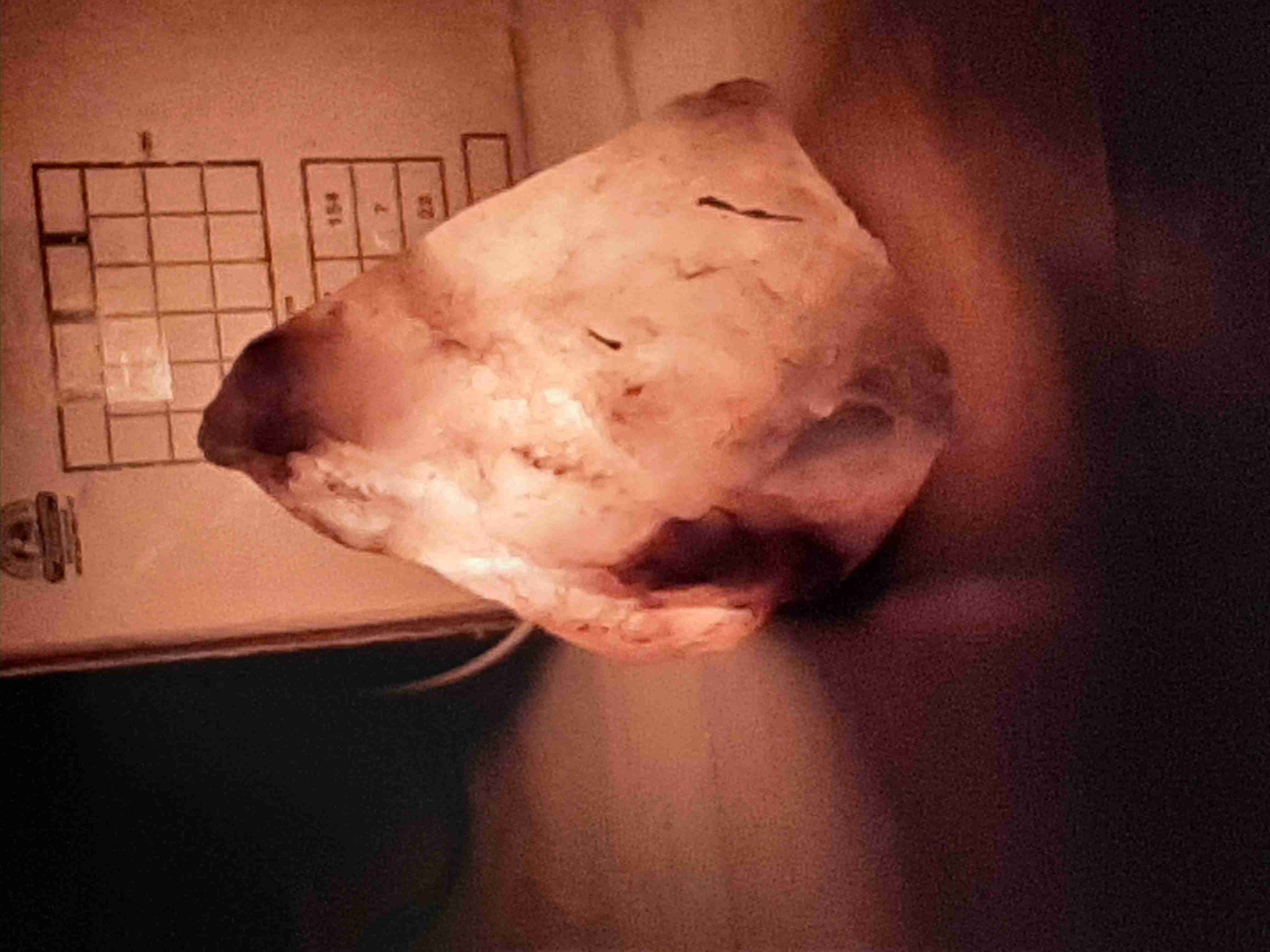 Lámpara decorativa de sal del Himalaya, ideal para ambientes relajantes. En buen estado, entrega luz suave y cálida.