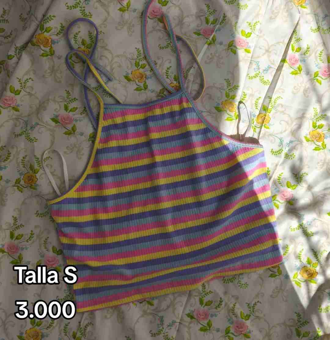 Colorida polera de tirantes con diseño de rayas, ideal para el verano. Talla S, en buen estado.