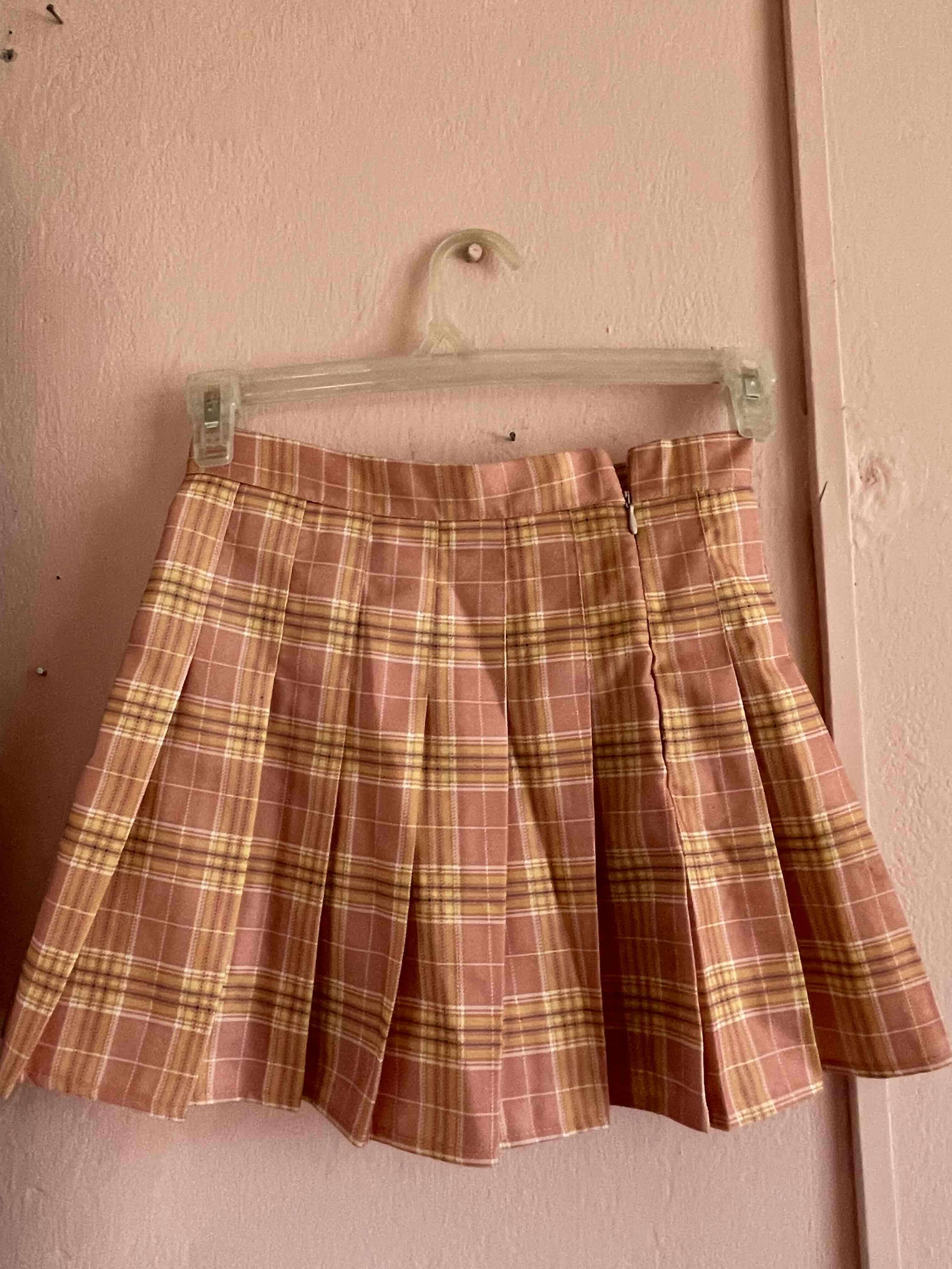 Falda a cuadros en tonos rosados, estilo juvenil y en buen estado. Ideal para salidas casuales.