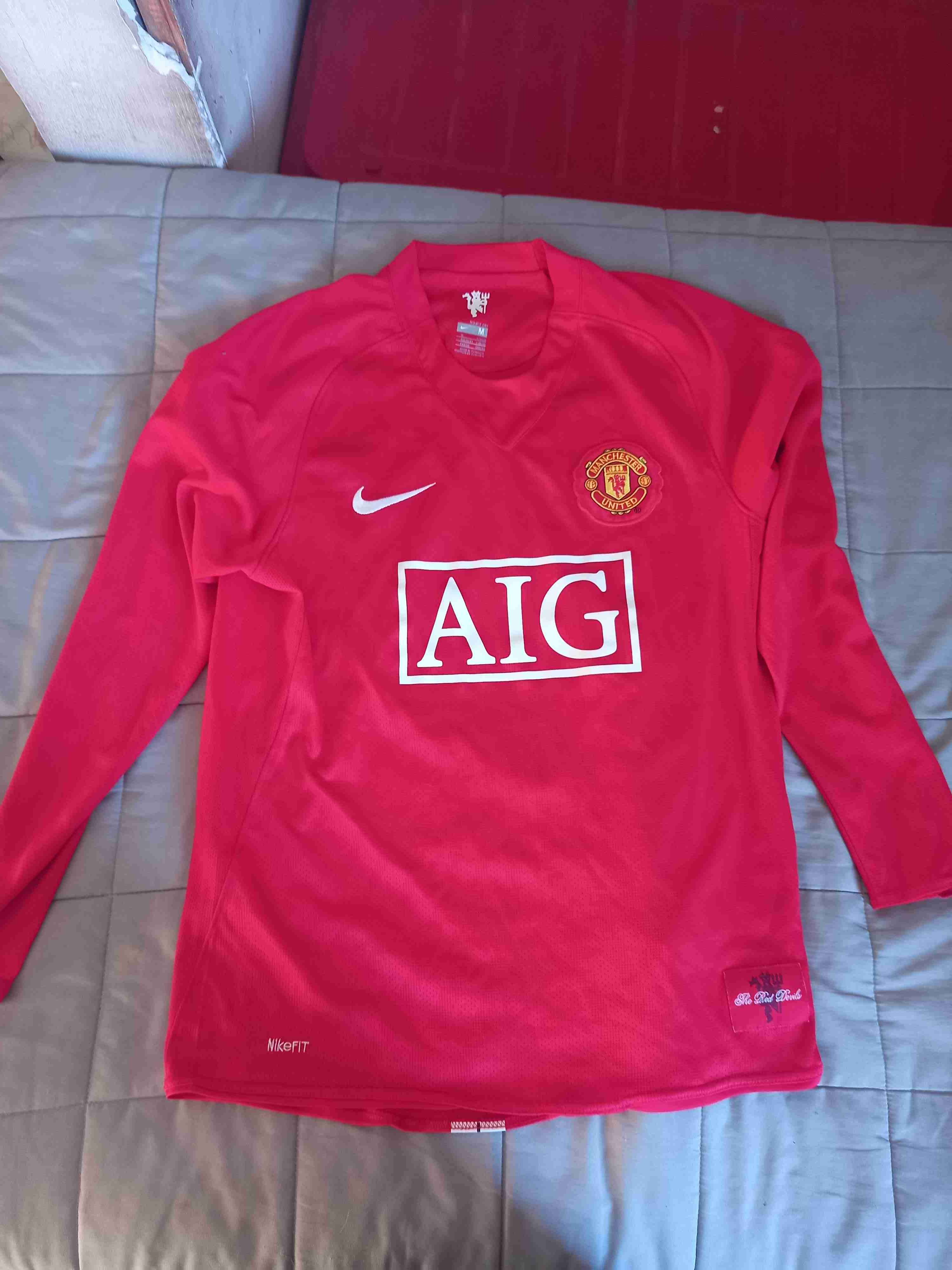 Camiseta roja de manga larga del Manchester United, ideal para fanáticos del fútbol. Buen estado, con logo y detalles Nike.