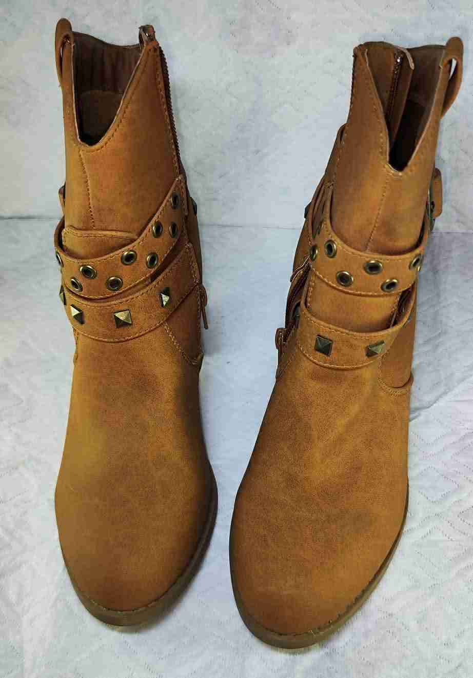 Elegantes botines marrones con diseño de tachas. En buen estado, ideales para un look casual y moderno.