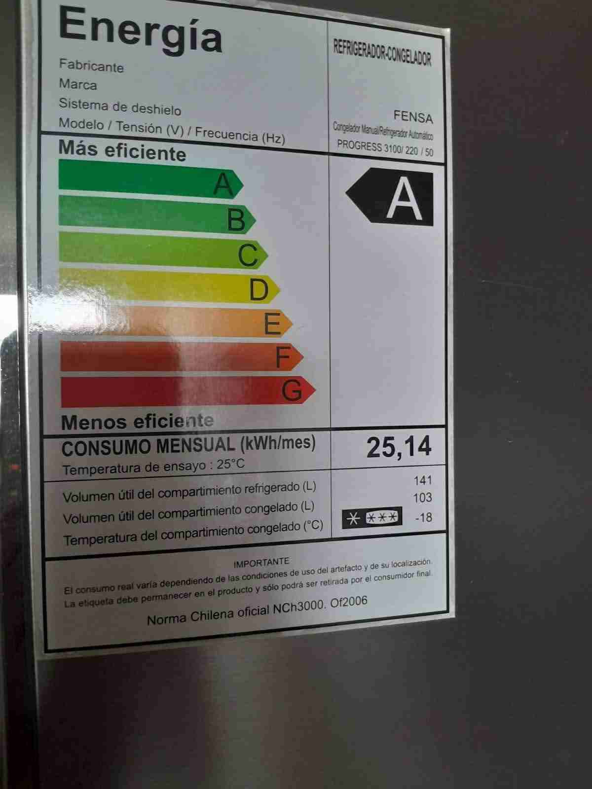 Refrigerador Fensa eficiencia A