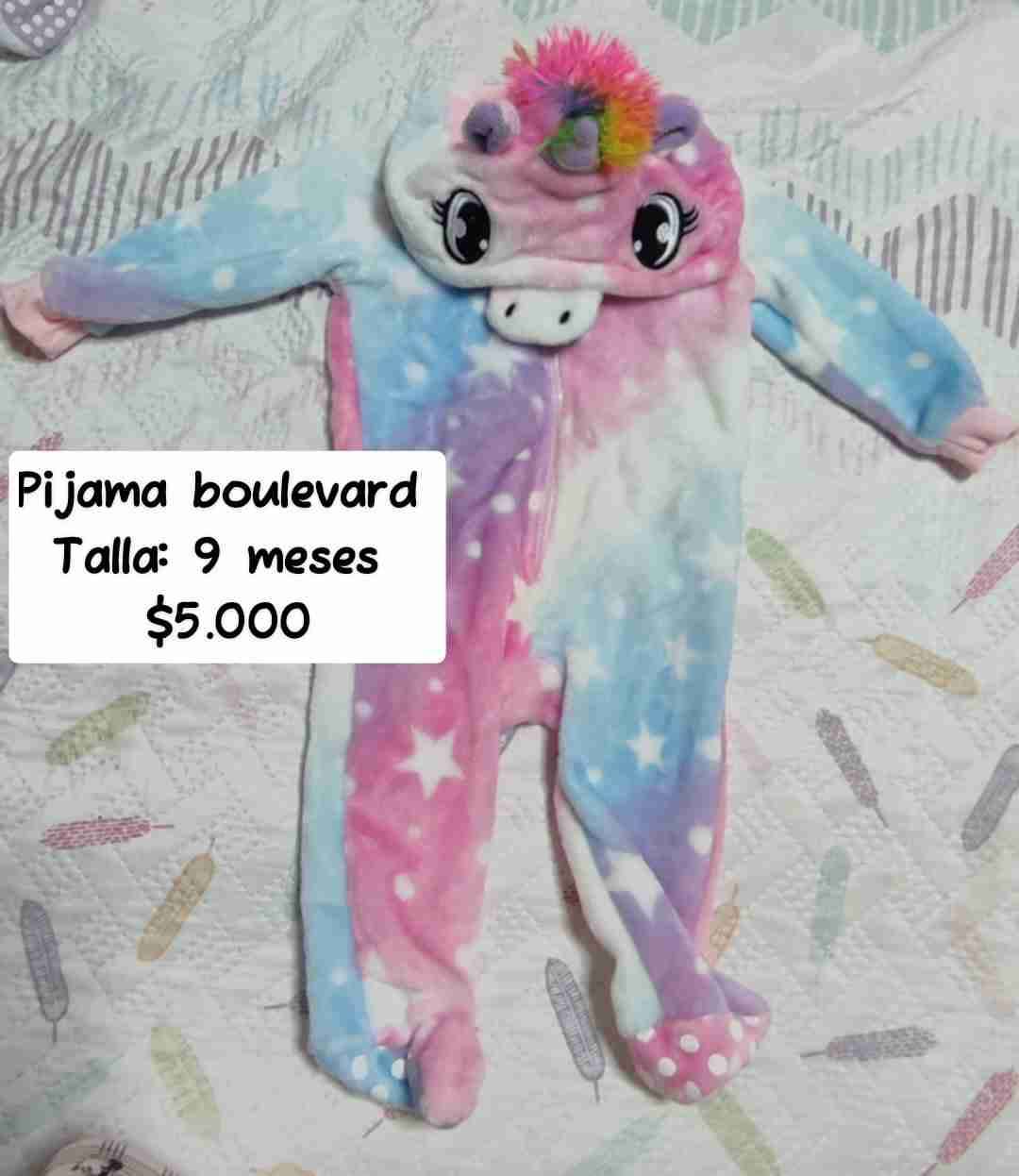 Pijama tipo enterito con diseño de unicornio, colores vivos y capucha. Ideal para mantener a tu bebé abrigado y entretenido.