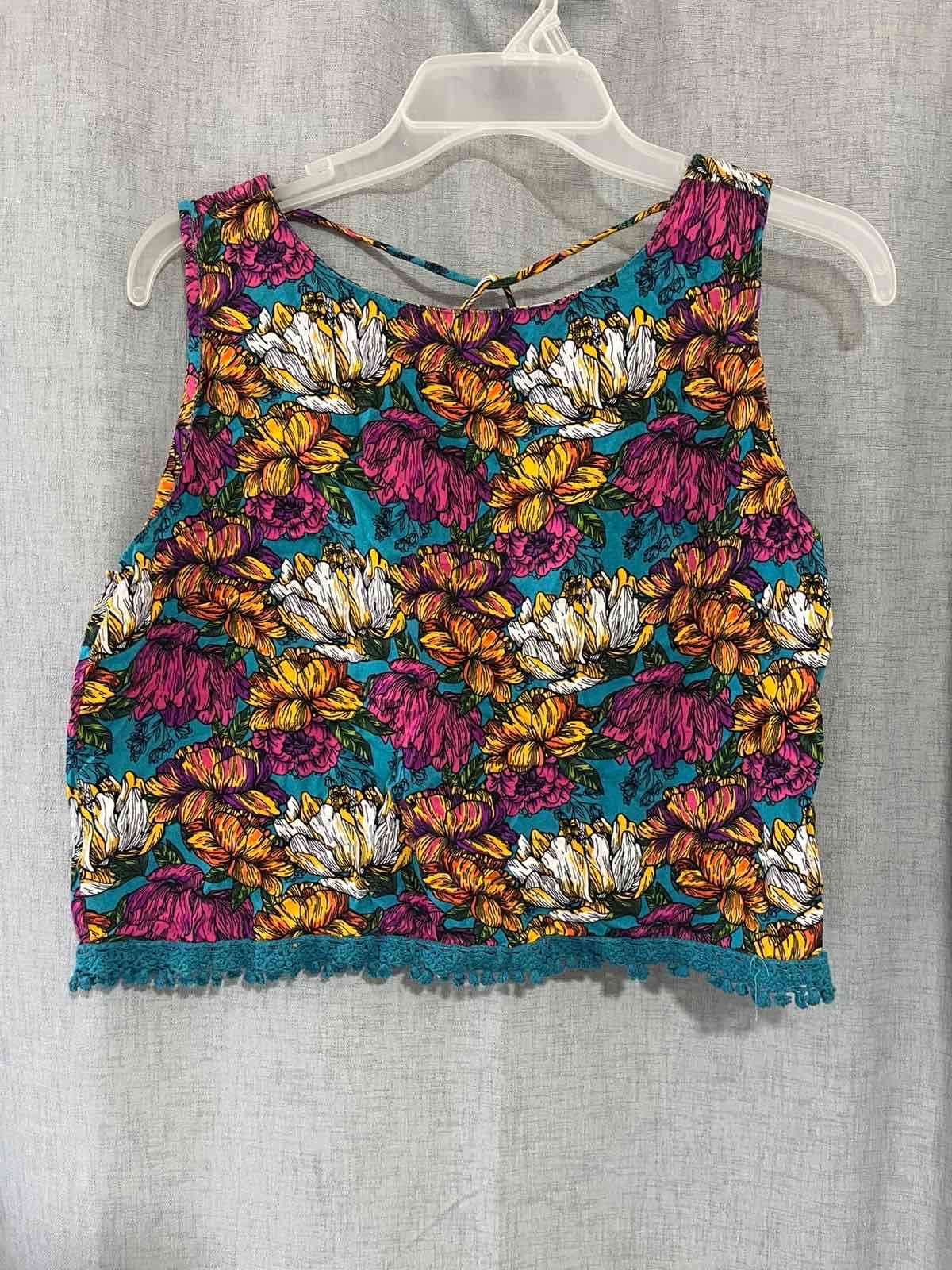 Crop top con estampado floral vibrante. Ideal para días de verano. En buen estado con leves signos de uso.