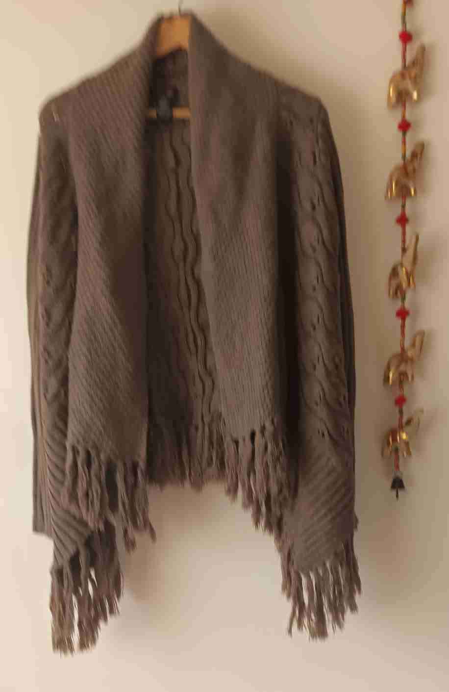 Cardigan marrón trenzado con flecos en excelente estado. Perfecto para días fríos, versátil y elegante. Grueso Talla M
