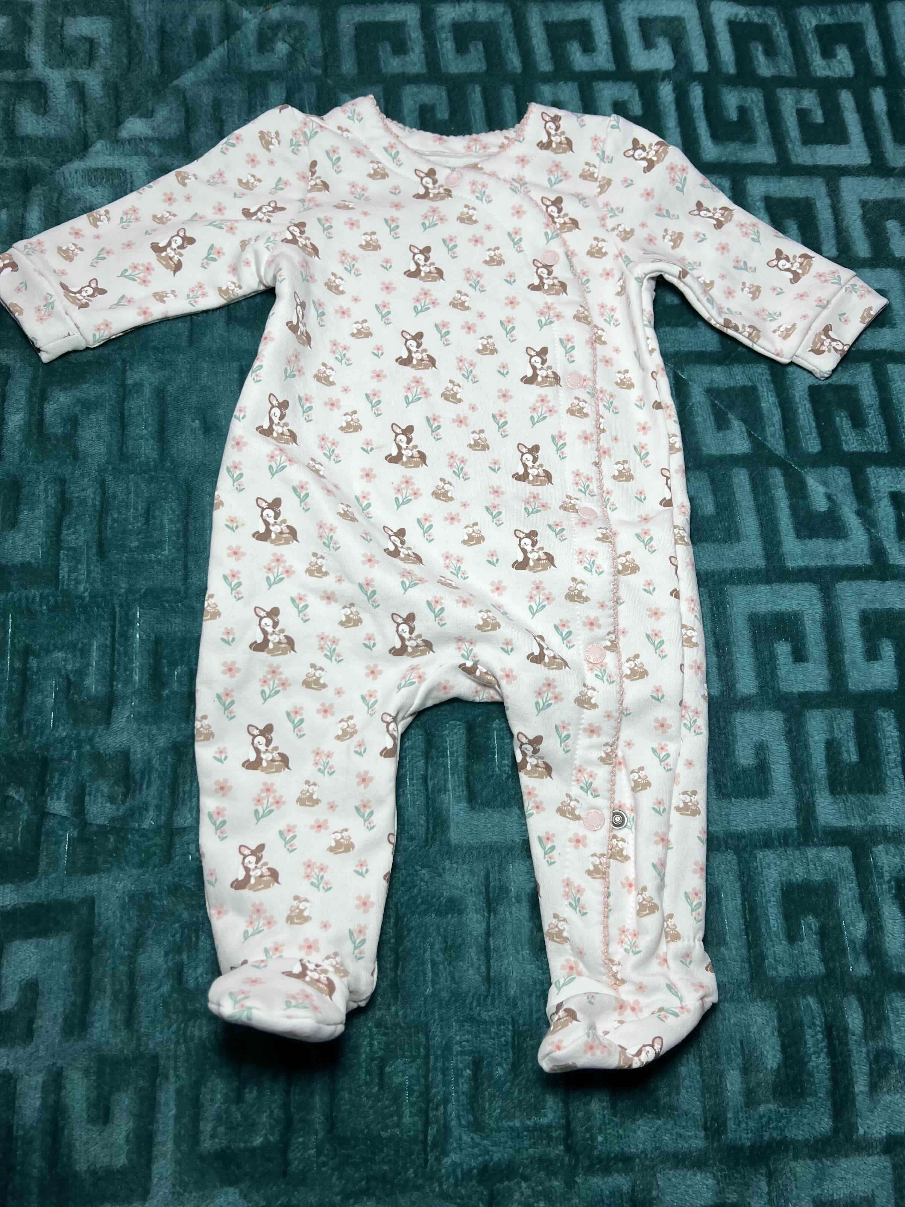 Enterito de bebé con diseño de Bambi y flores. Ideal para dormir o jugar, en excelente estado. Tiene 1 posturas cada uno Ambos talla 3 meses marca 4Kids