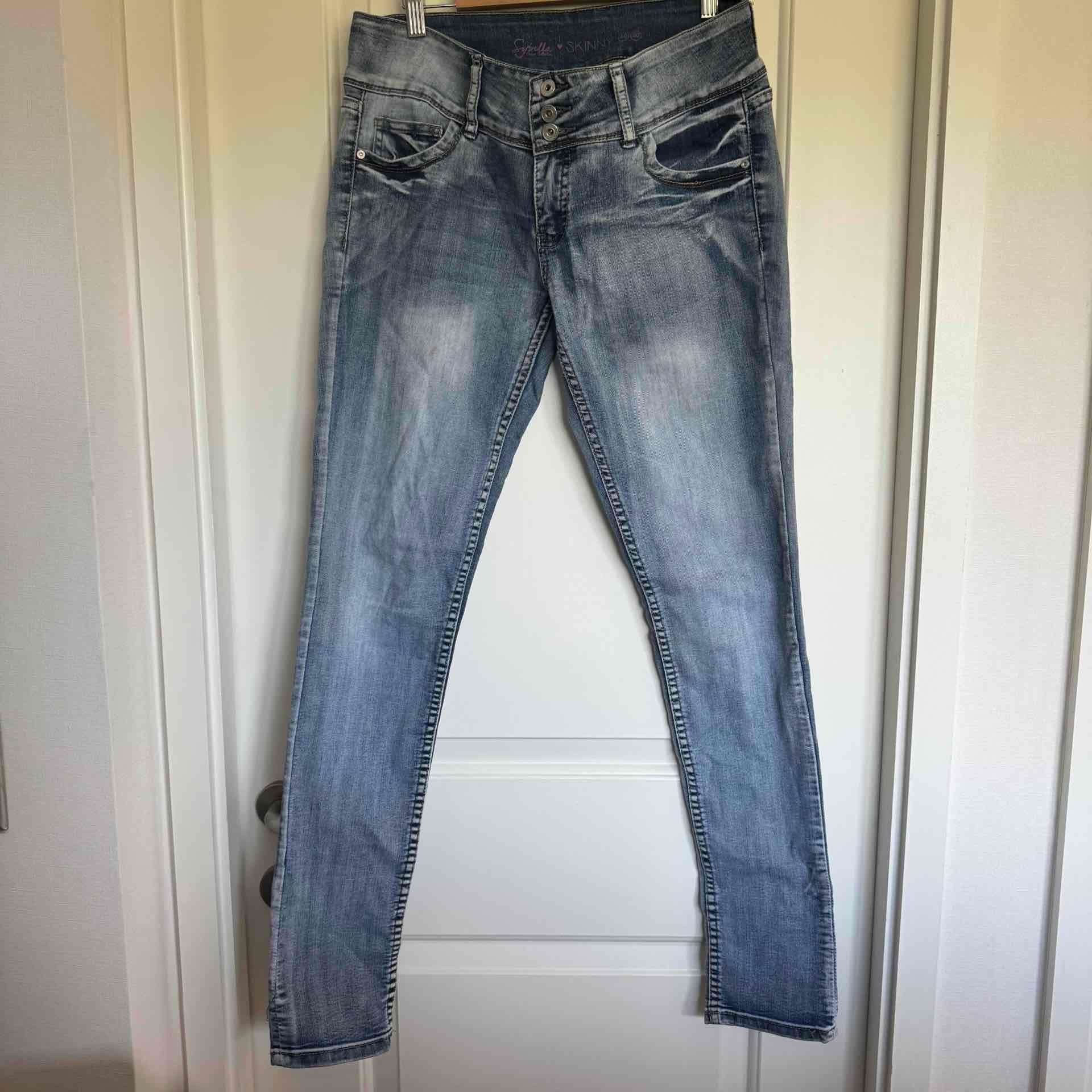 Jeans estilo skinny en tono azul lavado. En buen estado, ideal para un look casual y cómodo.