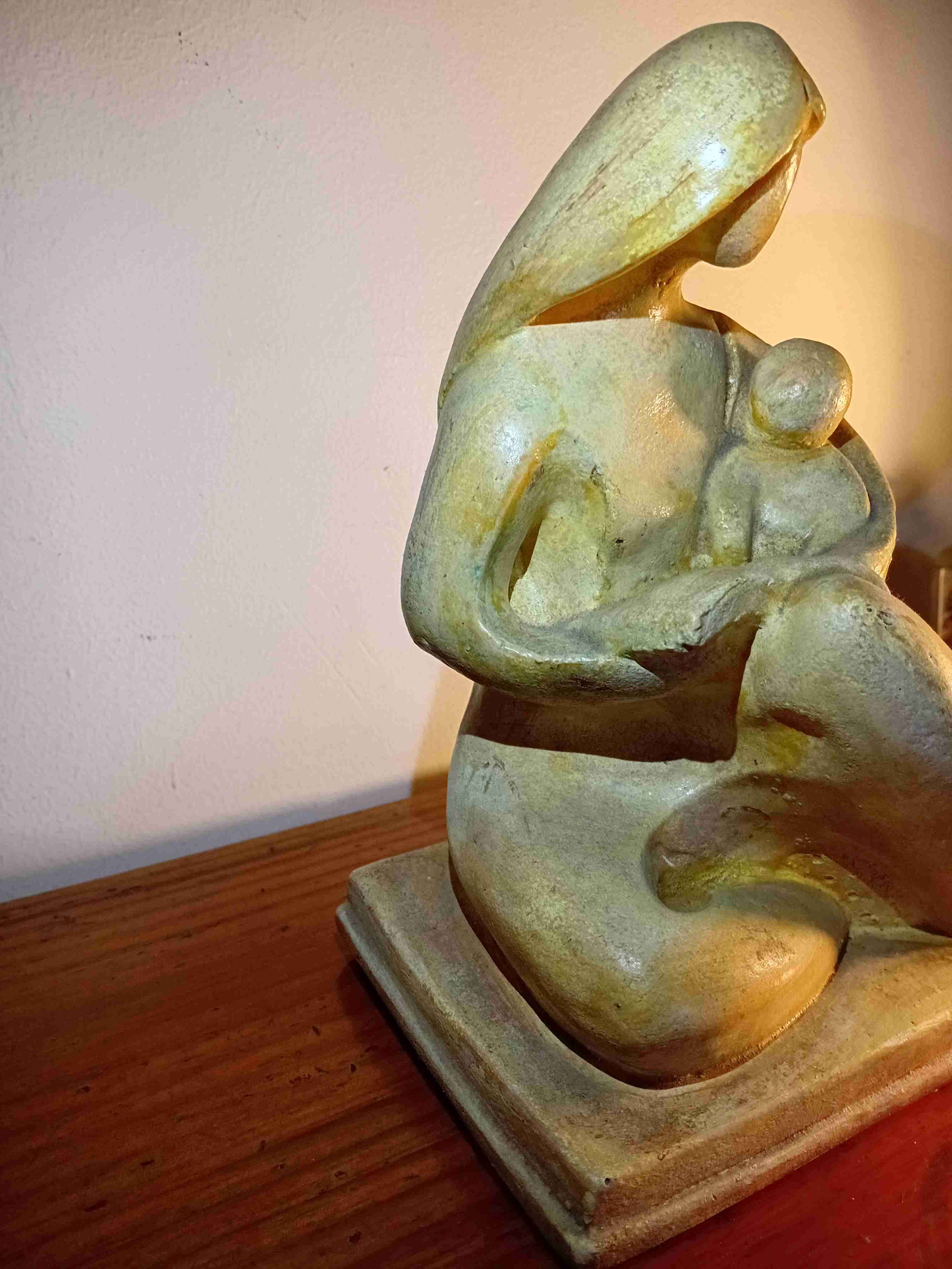 Elegante escultura representando una madre con su hijo. Ideal para decorar tu hogar u oficina. En buen estado.