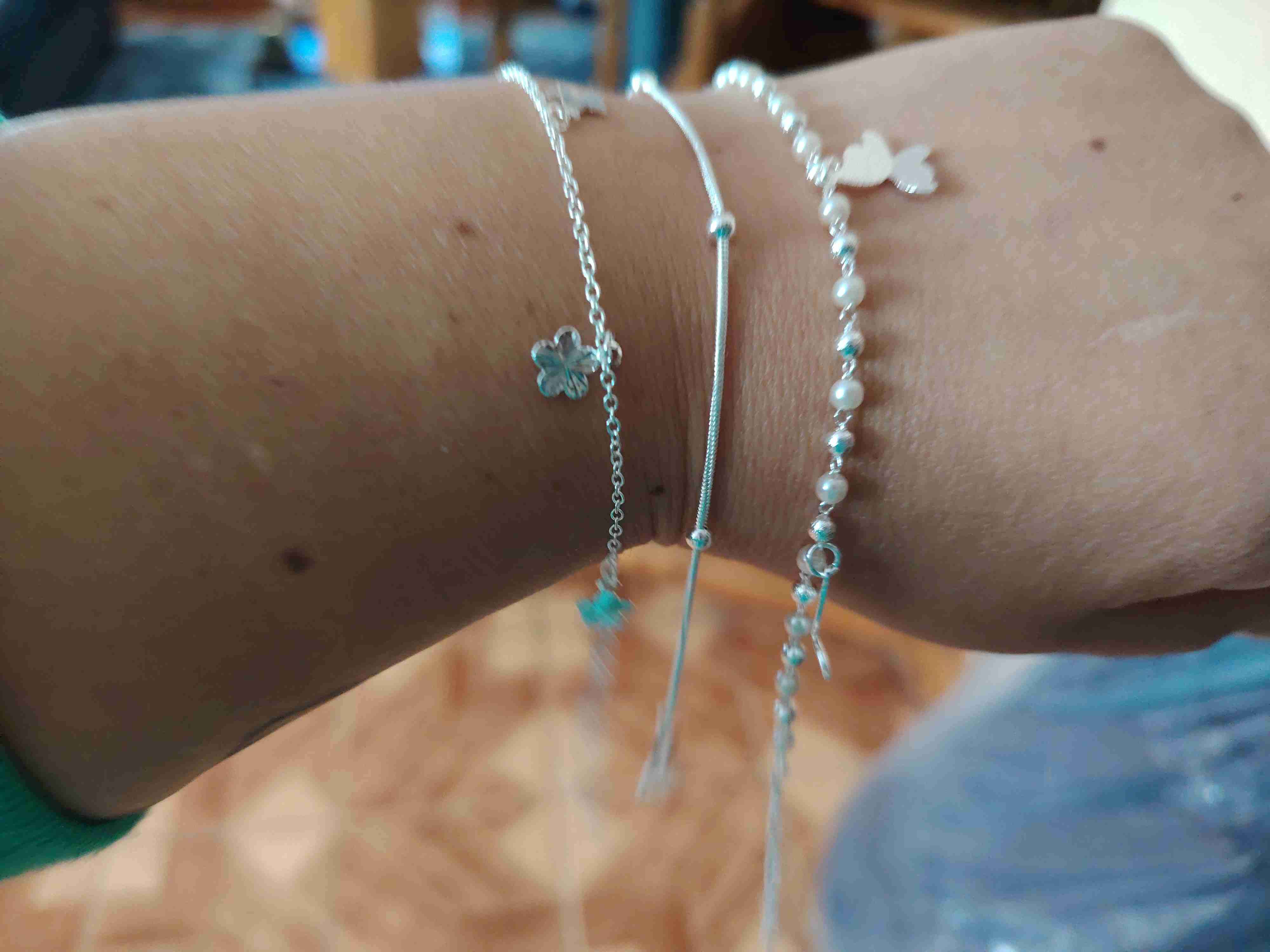 Elegantes pulseras de plata con dijes decorativos. Perfectas para el uso diario o una ocasión especial.
