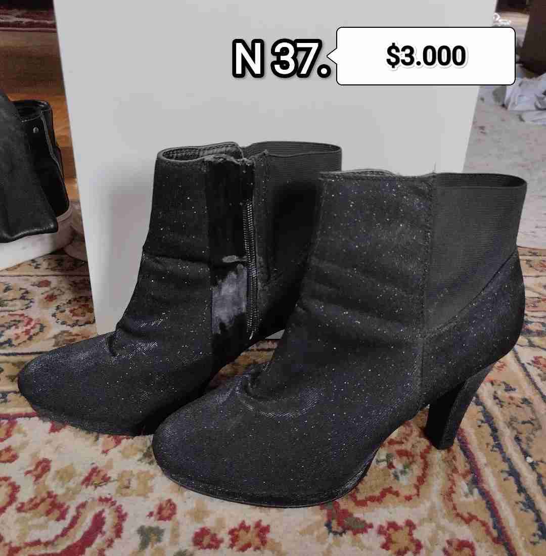 Elegantes botines negros con brillo. Ideales para ocasiones especiales. En buen estado.