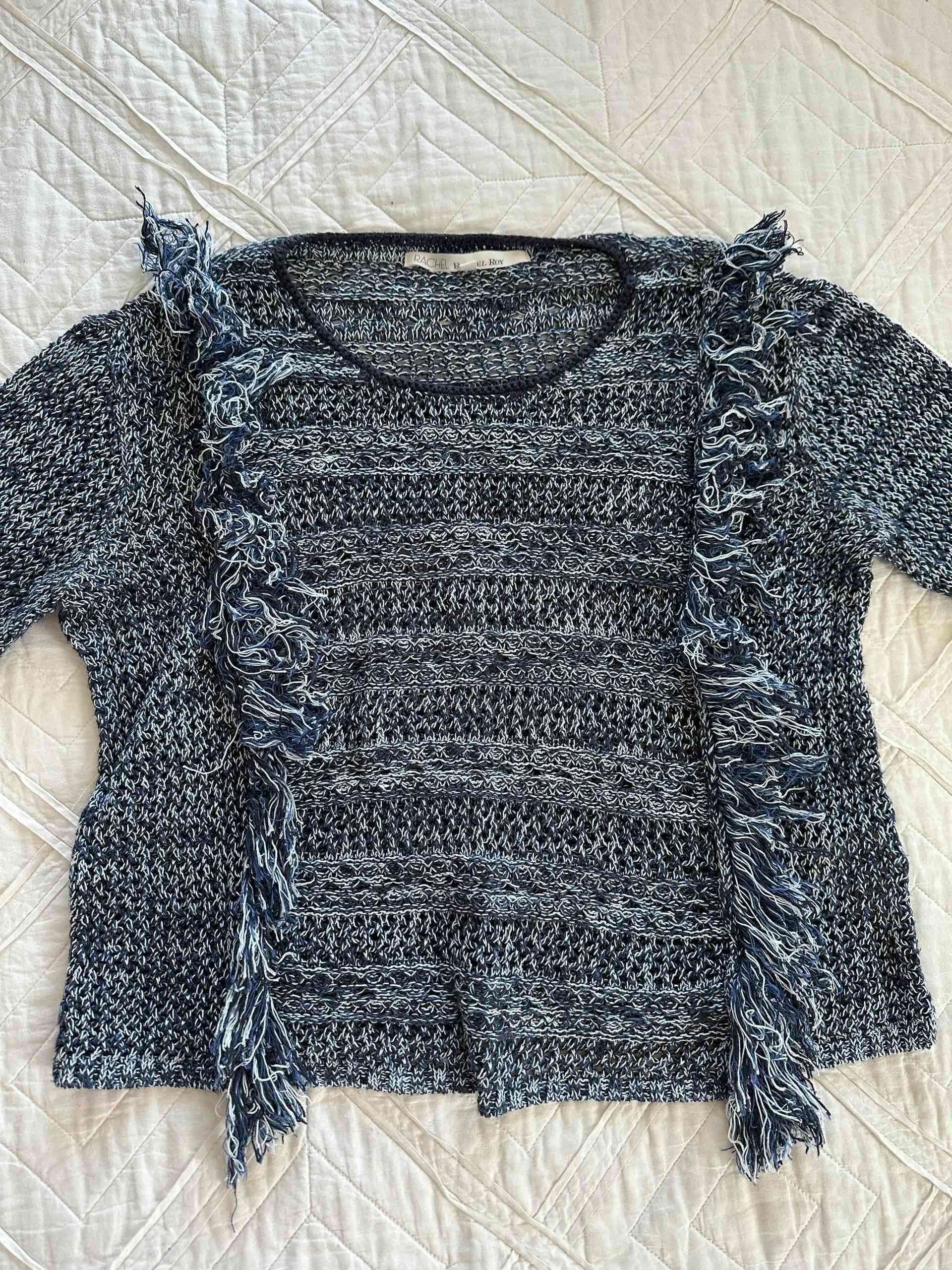 Sweater azul con flecos