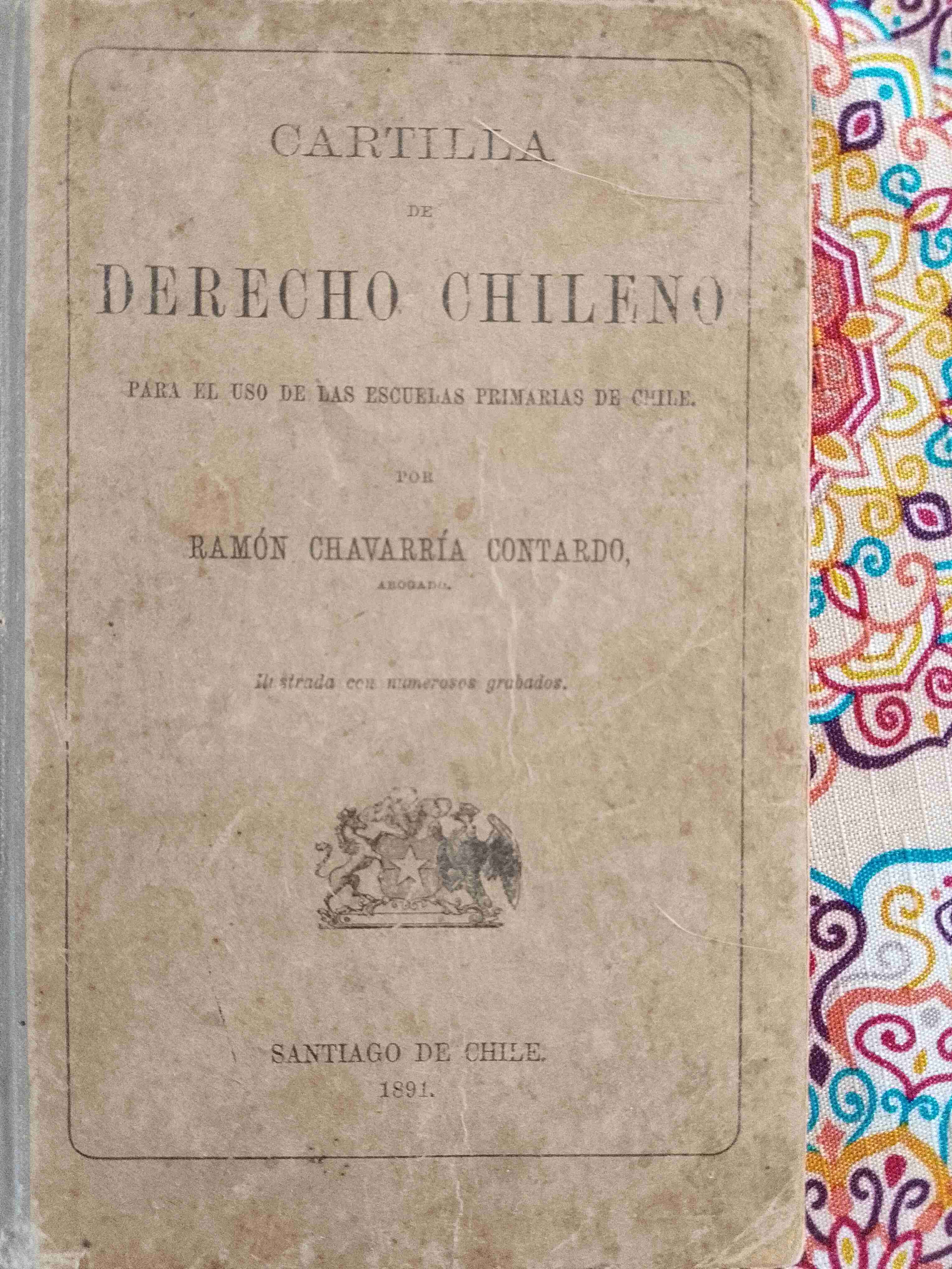 Antigua cartilla de derecho chileno usada en escuelas primarias. Edición de 1891, muestra desgaste por el tiempo. Un tesoro para coleccionistas