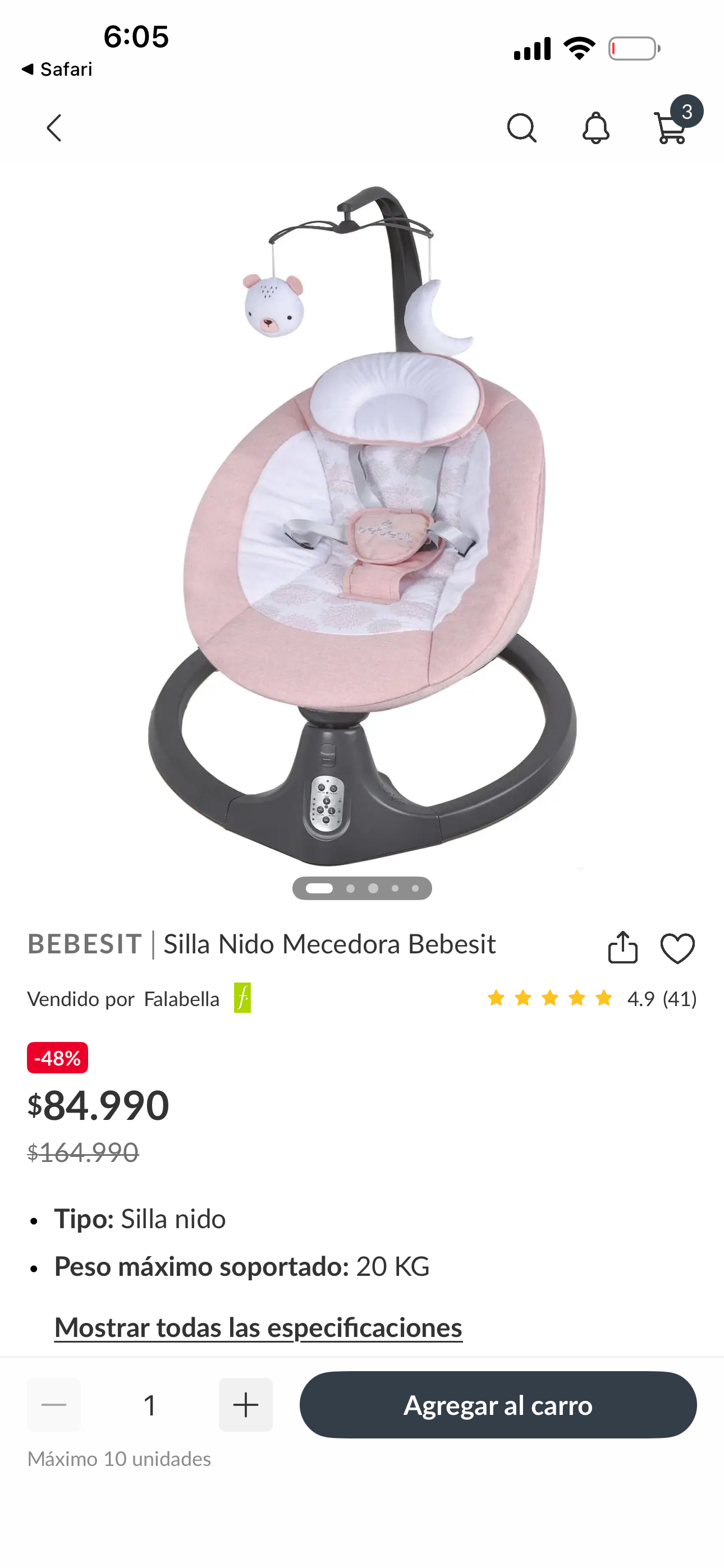 Cómoda silla nido mecedora, ideal para el descanso del bebé. Soporta hasta 20 kg. Nueva solo Se abrió la caja para verificar que estuviera todo