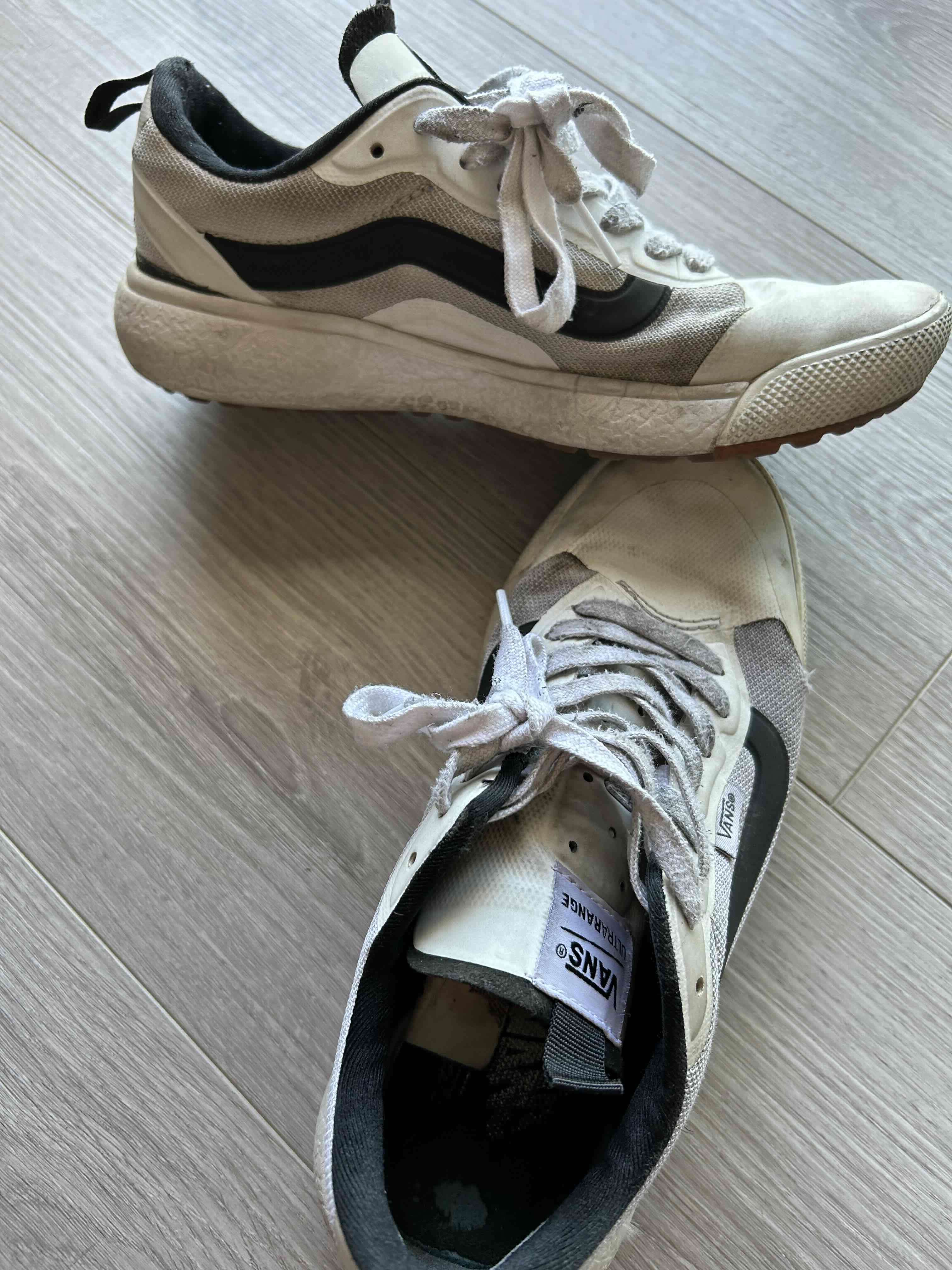 Zapatillas deportivas blancas con negro, estilo casual y moderno. Buen estado general, con leves signos de uso.