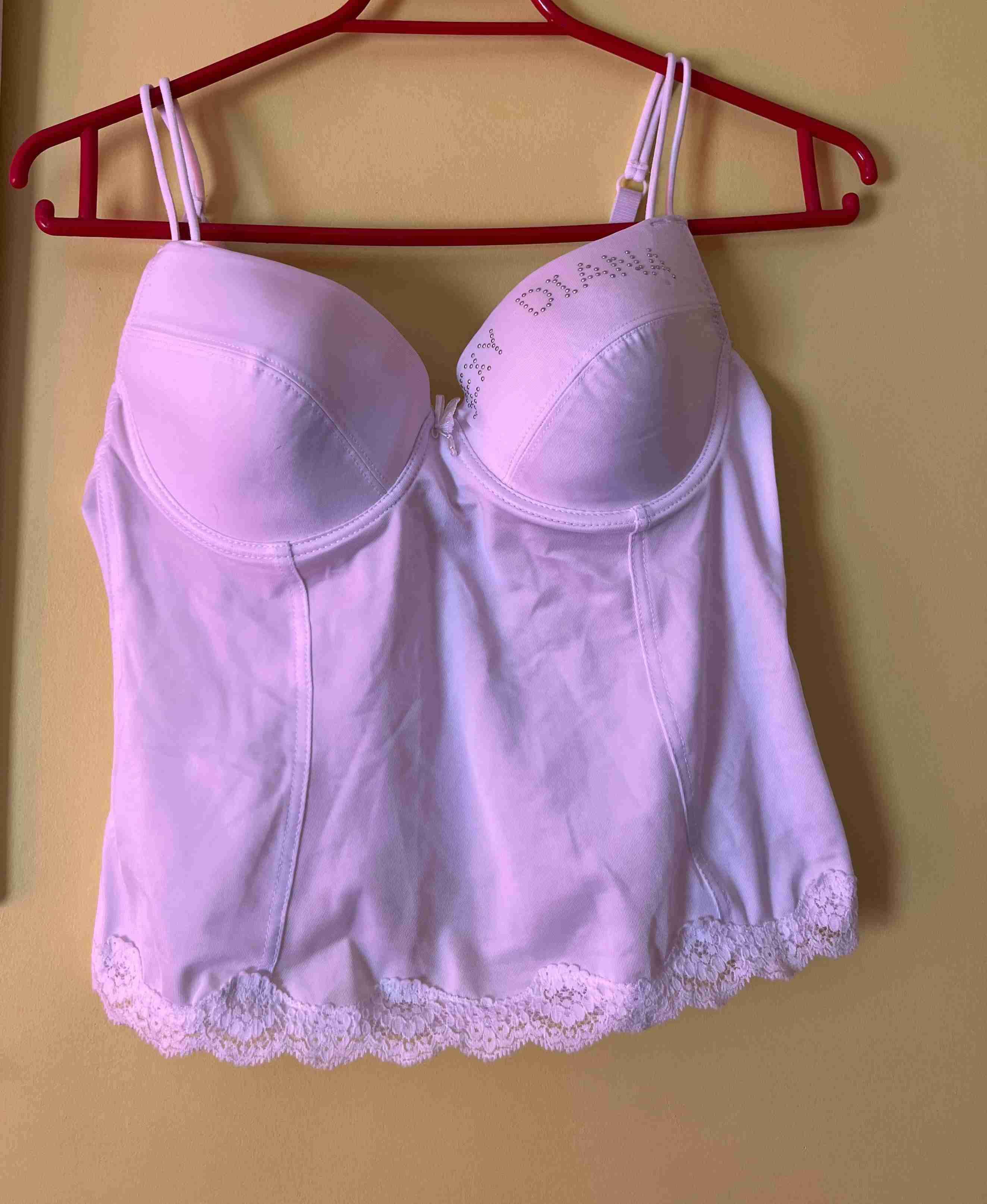 Top blanco con detalles de encaje y tirantes dobles. Ideal para uso casual.