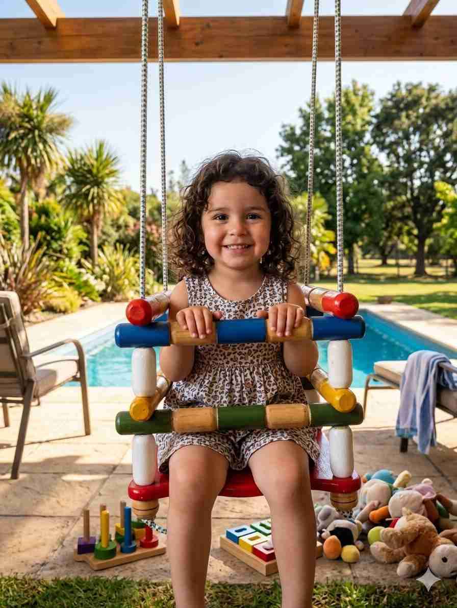 Columpio infantil de madera colorido