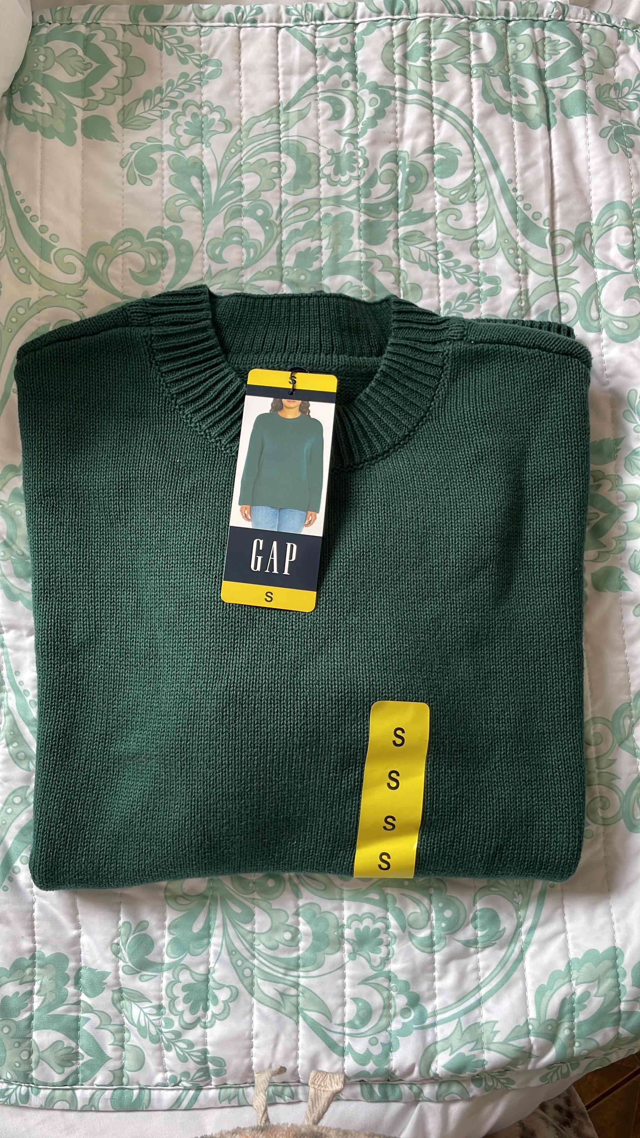 Suéter GAP verde oscuro, ideal para días fríos. Nuevo con etiquetas, talla S da para M
