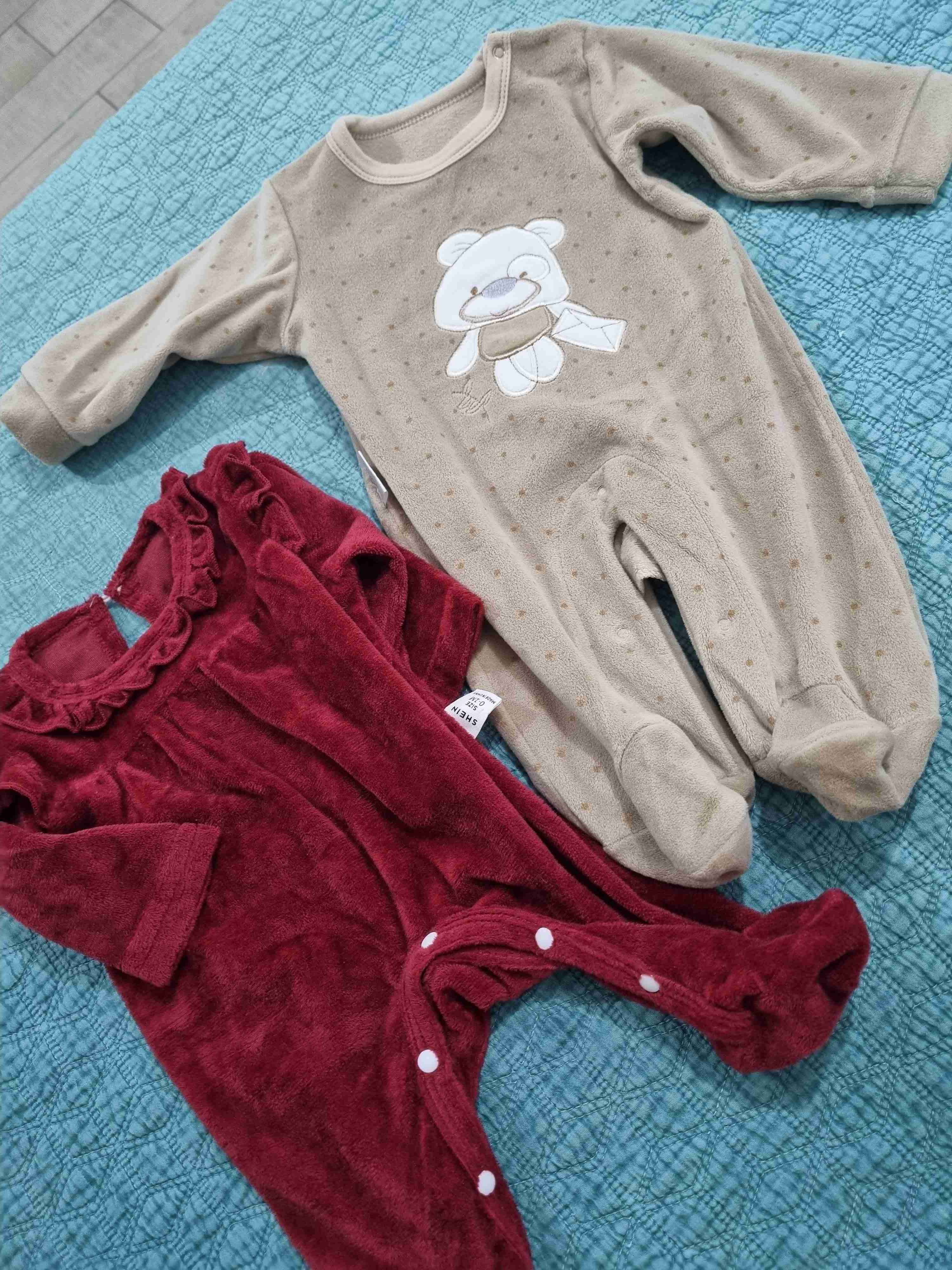 Enteritos de bebé en tonos beige y burdeos. Tela suave, ideal para confort del bebé. Buen estado general. 0 - 3 meses