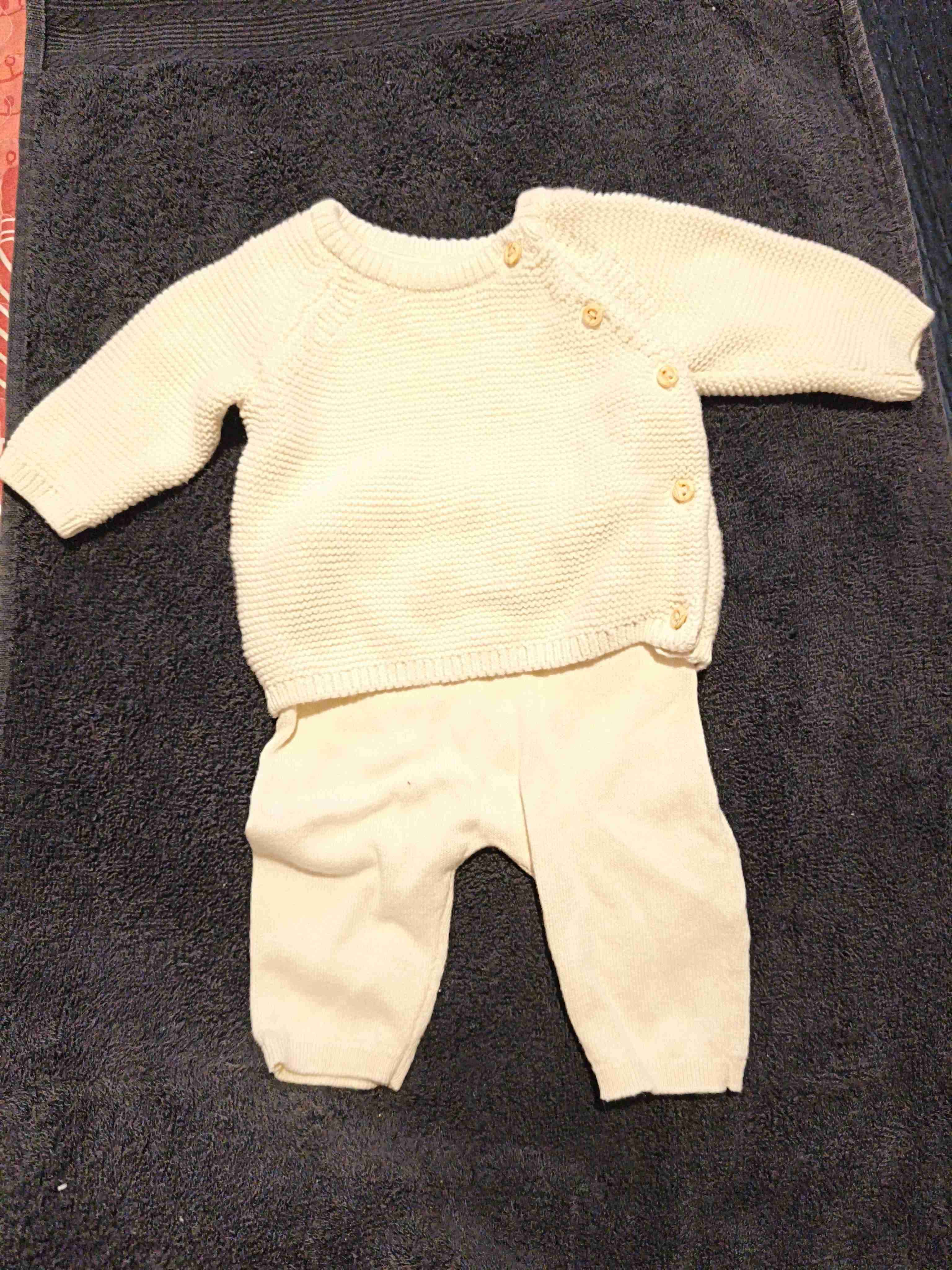 Conjunto tejido color crema H&M, ideal para mantener a tu bebé abrigado. En buen estado y muy cómodo para el uso diario. 0 a 1 (50 cms).