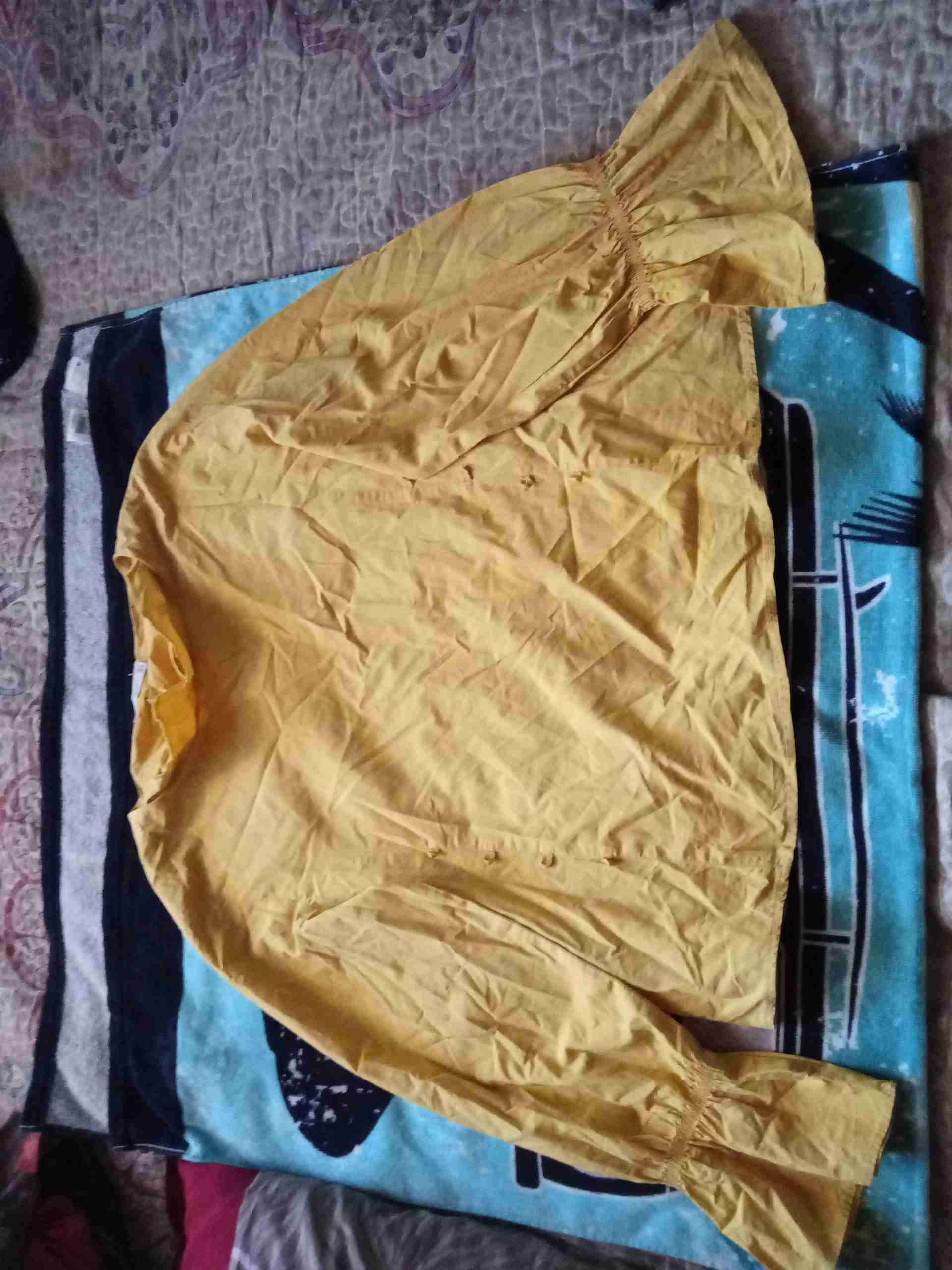 Blusa de color amarillo con mangas anchas, ideal para un look casual. En buen estado general con signos leves de uso.