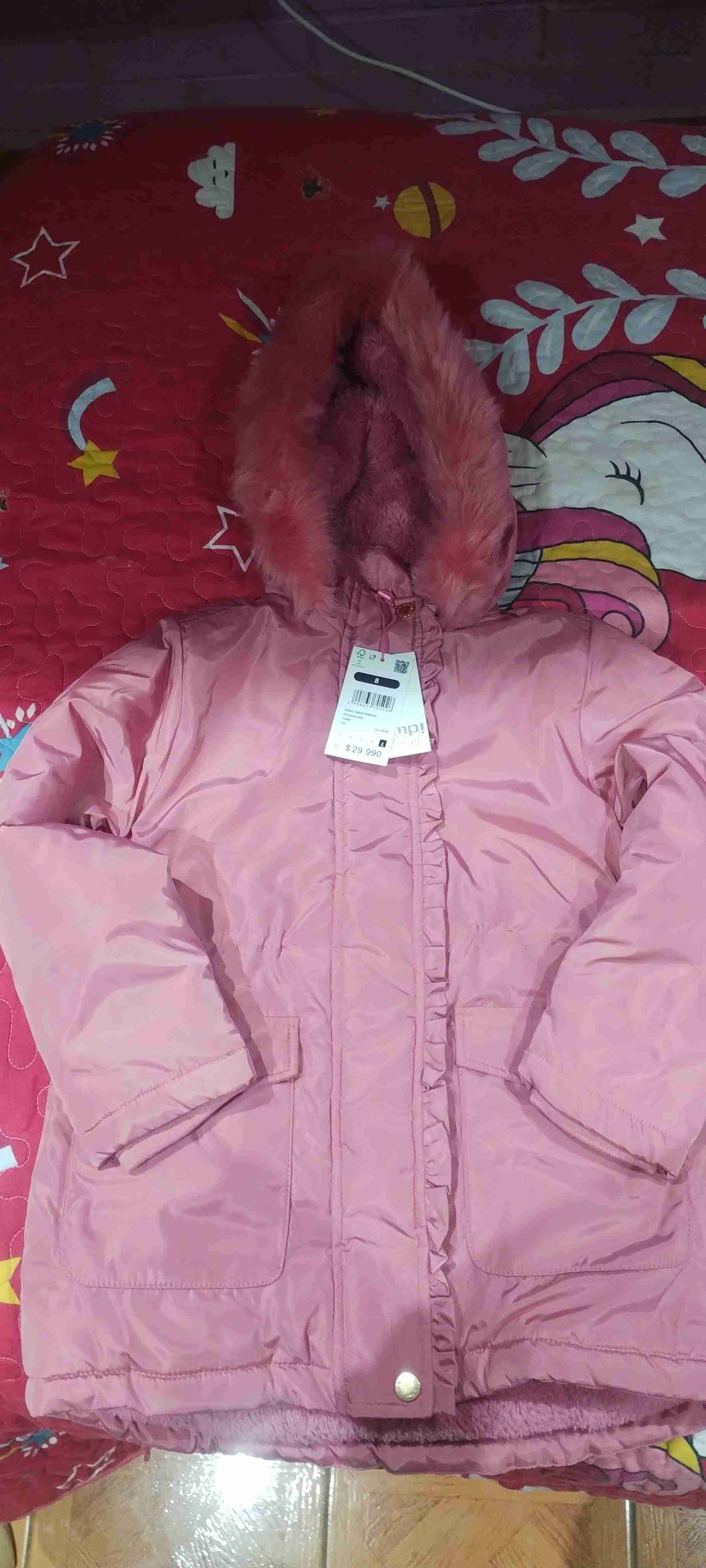 Parka de niña, color rosado, interior forrado de polar ideal para el invierno. Nueva con etiqueta. Talla 8